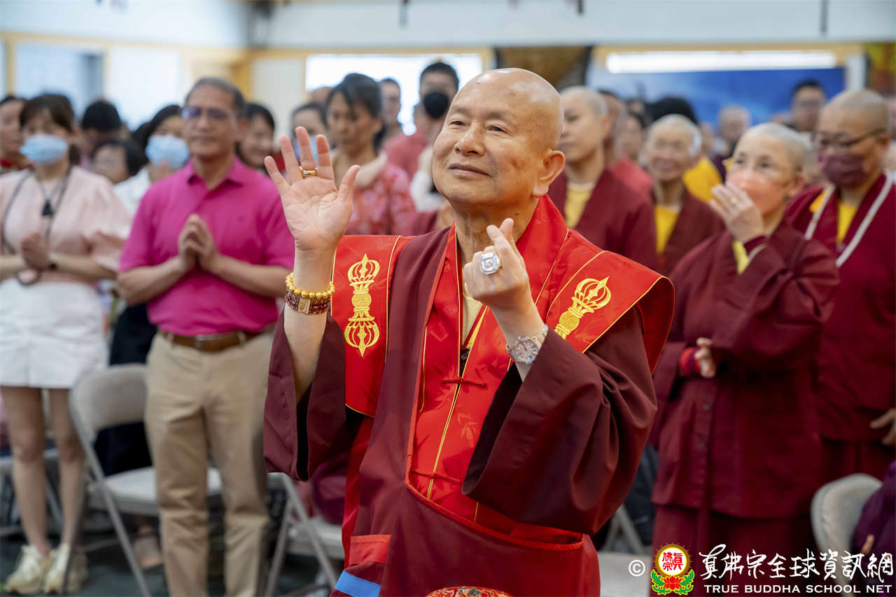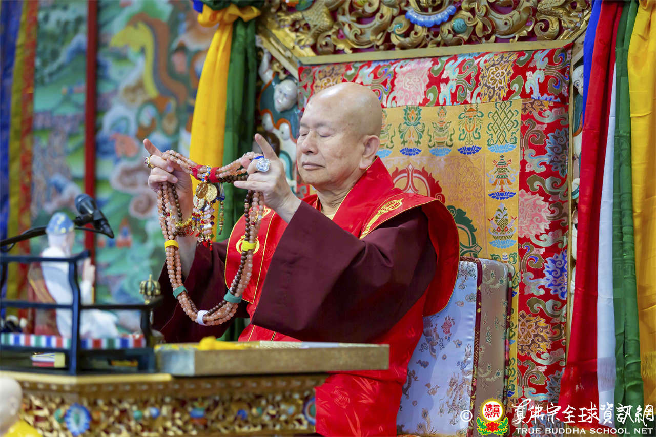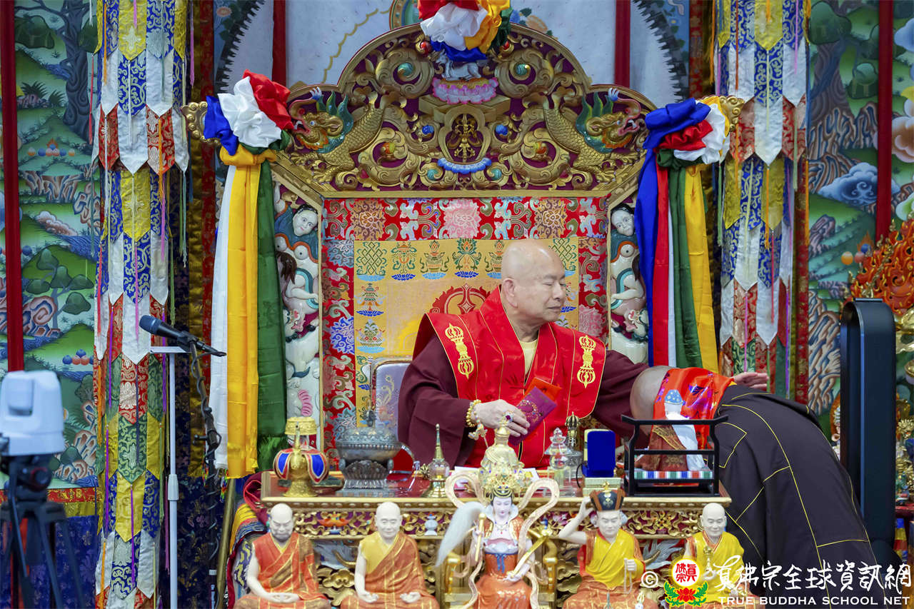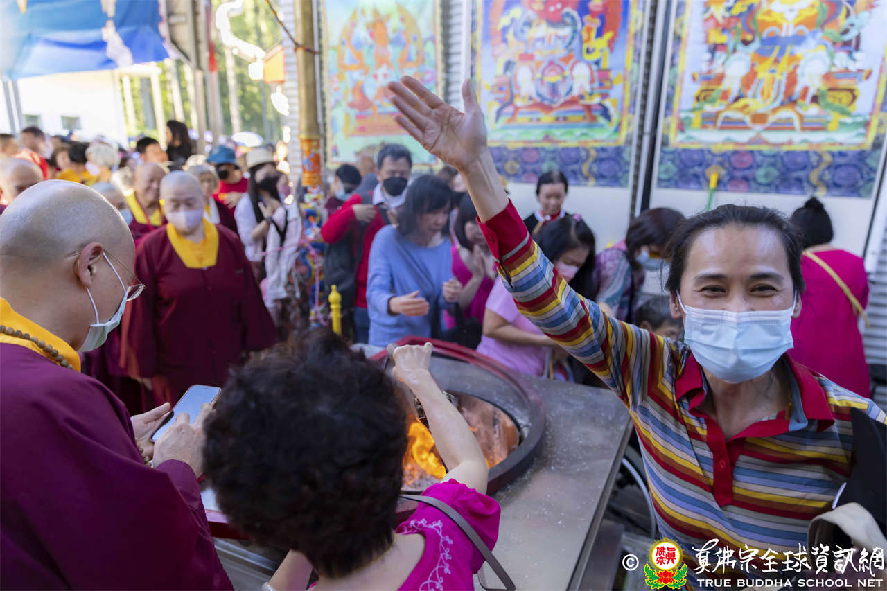 法王開示至此,護摩法會圓滿結束。接著,法王與線上的弟子打招呼,並為現場出席者賜授蓮華生大士法灌頂。