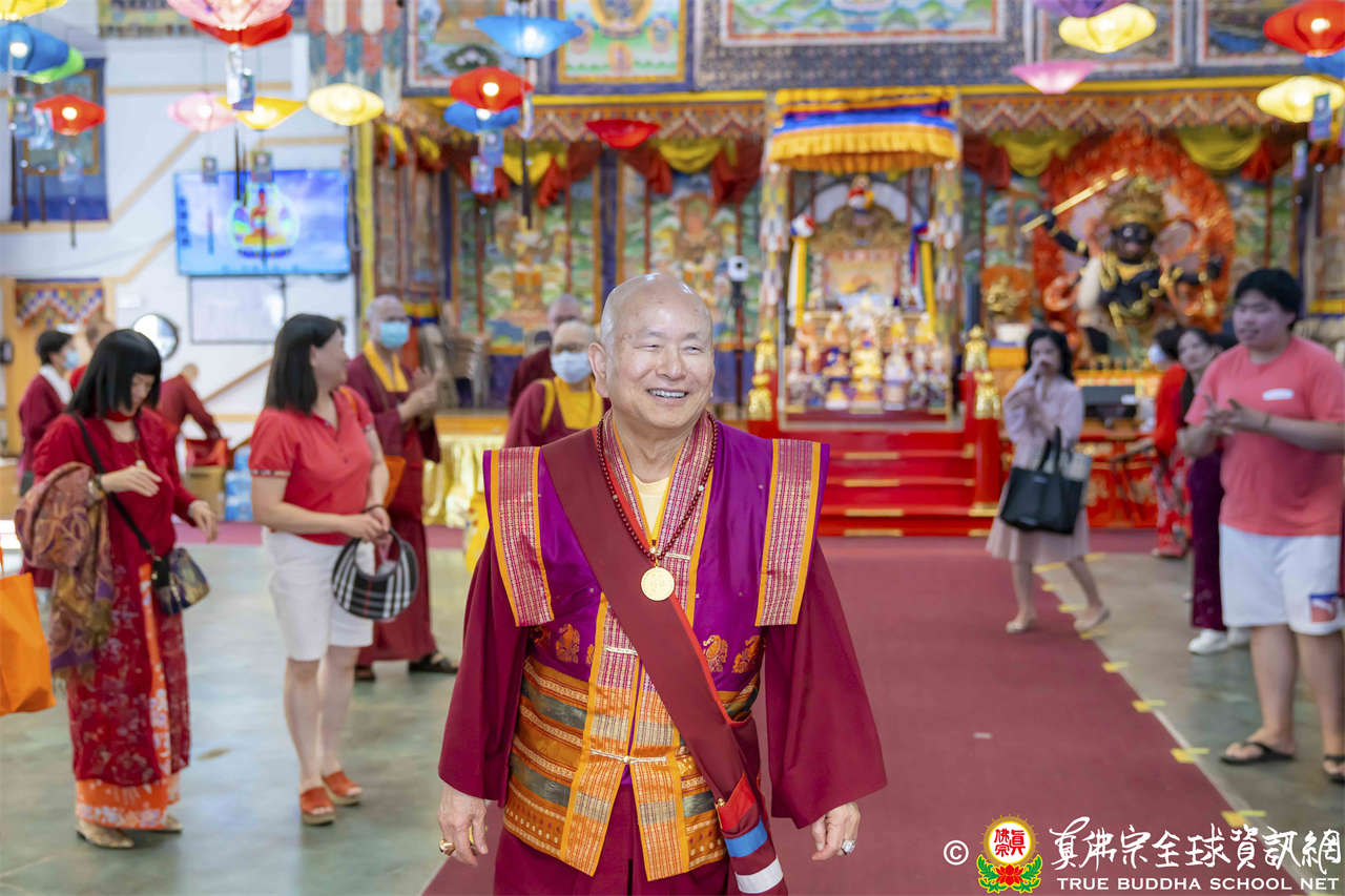 精彩的開示後,法王與網路線上弟子互動,並慈悲賜授現場弟子「阿彌陀佛法及千艘法船法灌頂」,與會眾等法喜充滿、心開意解,護摩法會圓滿吉祥。