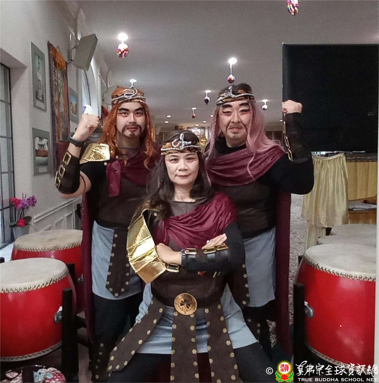 為了讓飾演蒙古大軍的演員更加逼真,在演出當天情商呂友蓮師姐、Soo Soo師姐(師佛常提到的玄冥二老)來幫忙化妝,為每位將士畫上濃濃的眉毛,黑黑的眼線,立馬就感到氣勢增長不少。