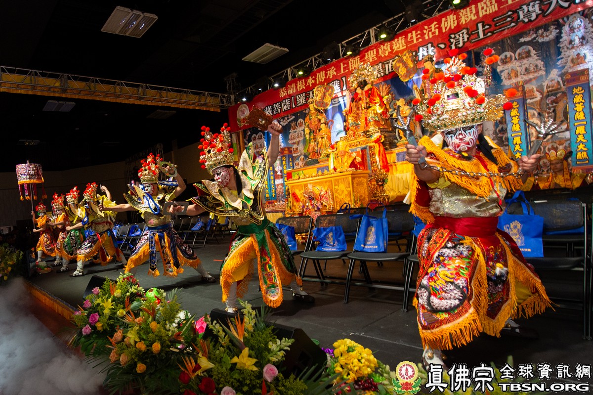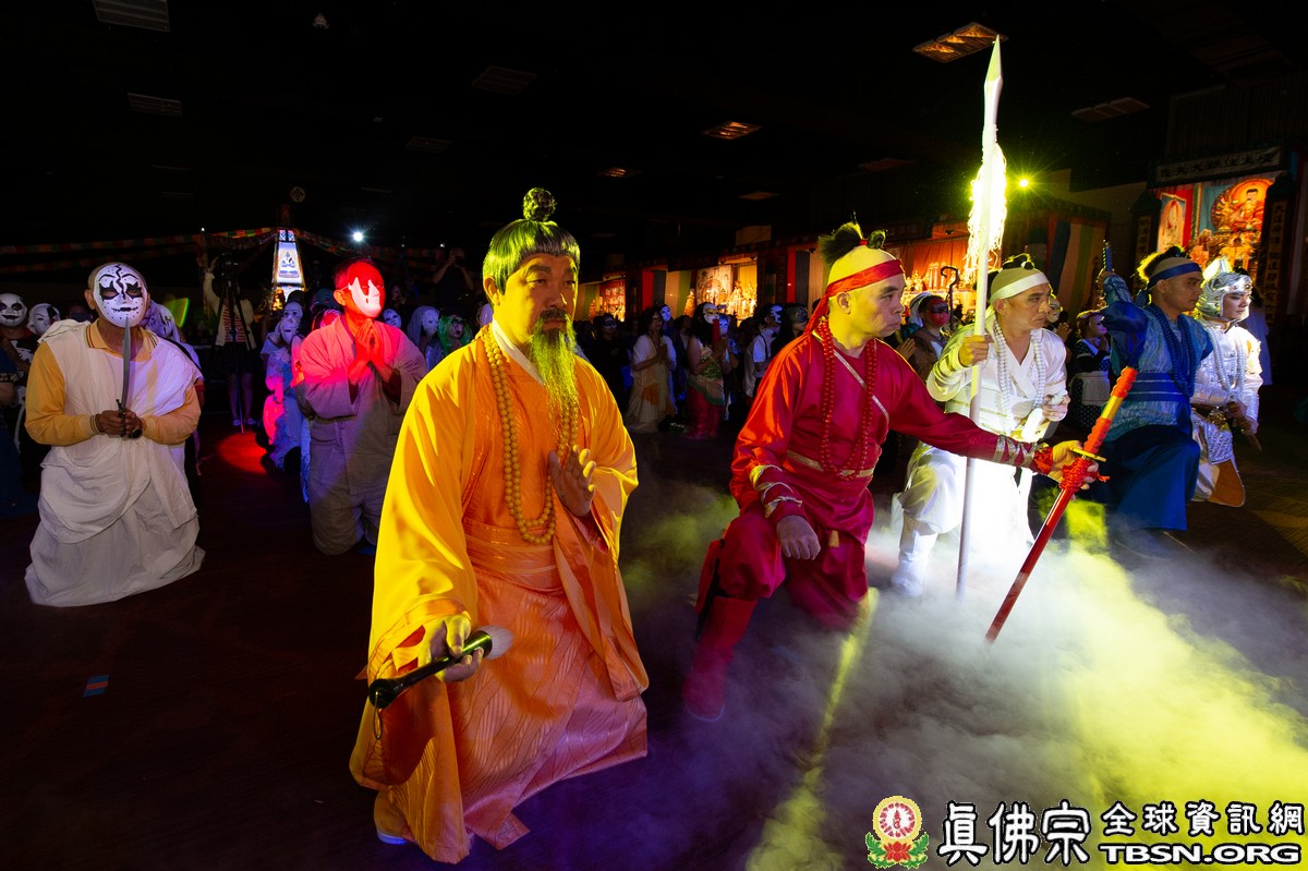 此次法會以劇場舞蹈方式演出「眾生無明」、「破地獄」、「召請諸尊,佛力救度」和「法布施 - 為眾靈皈依授戒」,讓整場法會氛圍震撼,震懾天地眾靈!