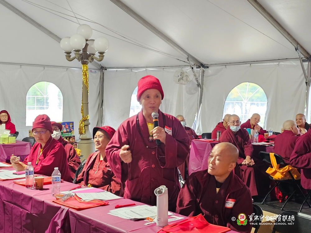 其中第二組蓮媖、蓮櫻教授師帶領的菩提行願組,蓮闐法師代表發言,提出了很實際的一個進行方法:「該組一致認為真佛互助祈禱會應該要先做年齡層區別,因為不同年齡層,有不同的煩惱,這樣在相同的情境下,聆聽別人的故事,或許可以反觀自己,還不至於太糟,由此得到激勵。」