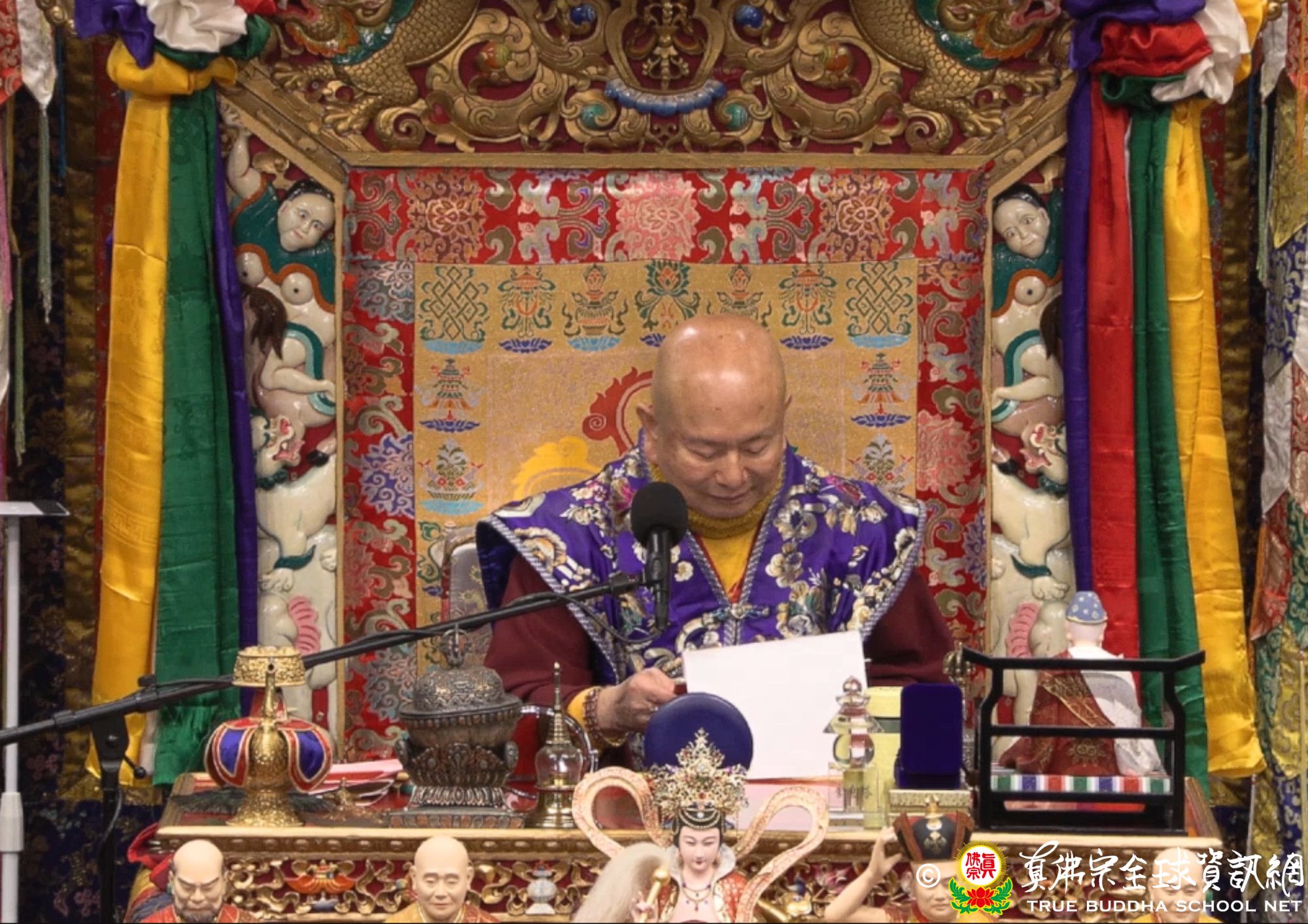 聖尊繼續解釋經意:若有佛菩薩看到清淨的佛土,不會感到歡喜。若看到不淨的佛土,也不感覺到憂愁。這就叫「淨穢一如」。如此一來沒有什麼障礙。這是未曾有的。其實所有的佛菩薩跟功德都是平等的。就算顯現的像不同,但是功德一樣,只是因為渡化眾生的原因而出現的佛土不同。什麼根器的就到什麼淨土。