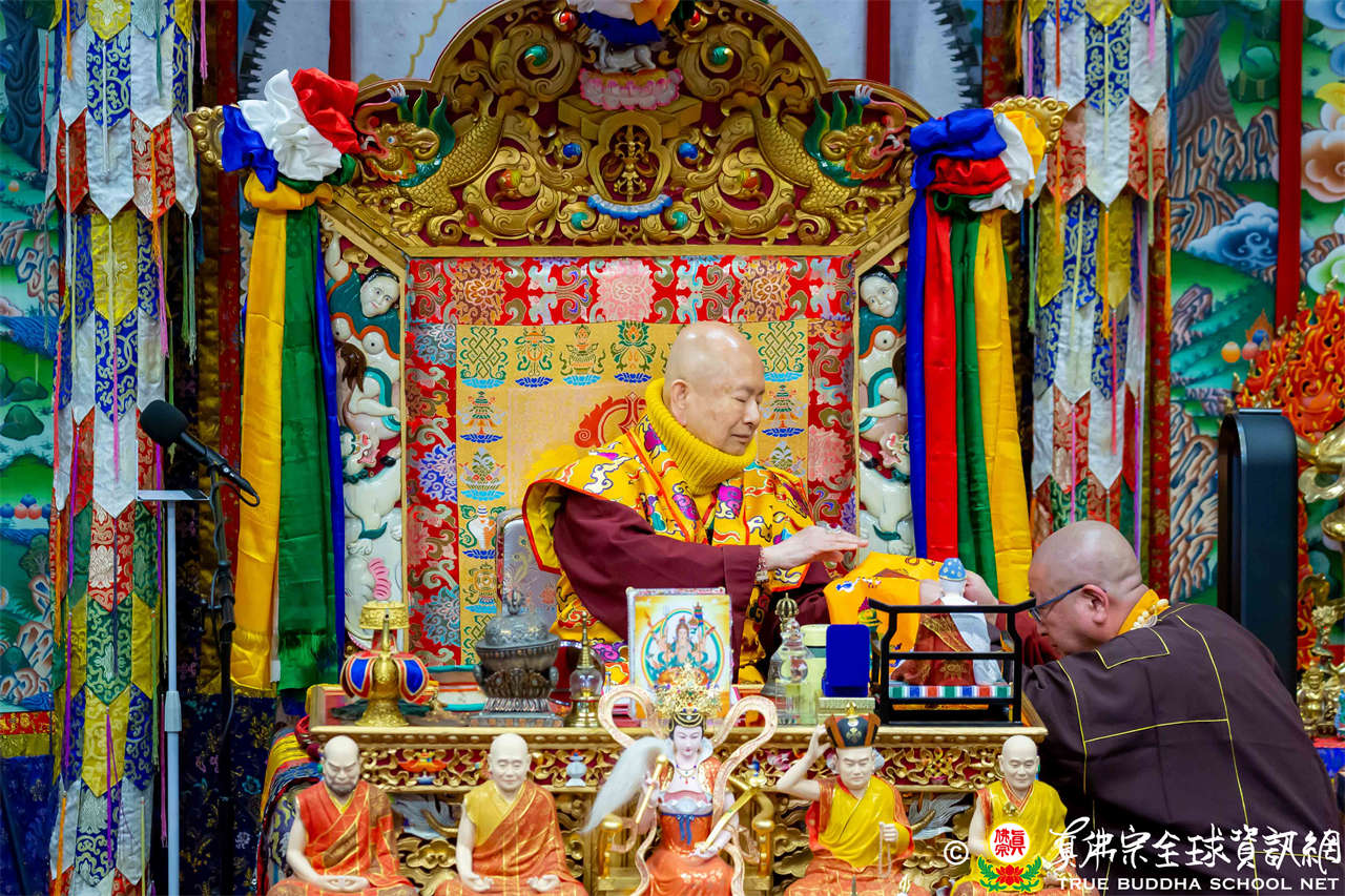 法王開示結束後,慈悲賜予與會大眾大隨求菩薩法灌頂,法會在莊嚴殊勝的氛圍中圓滿結束。