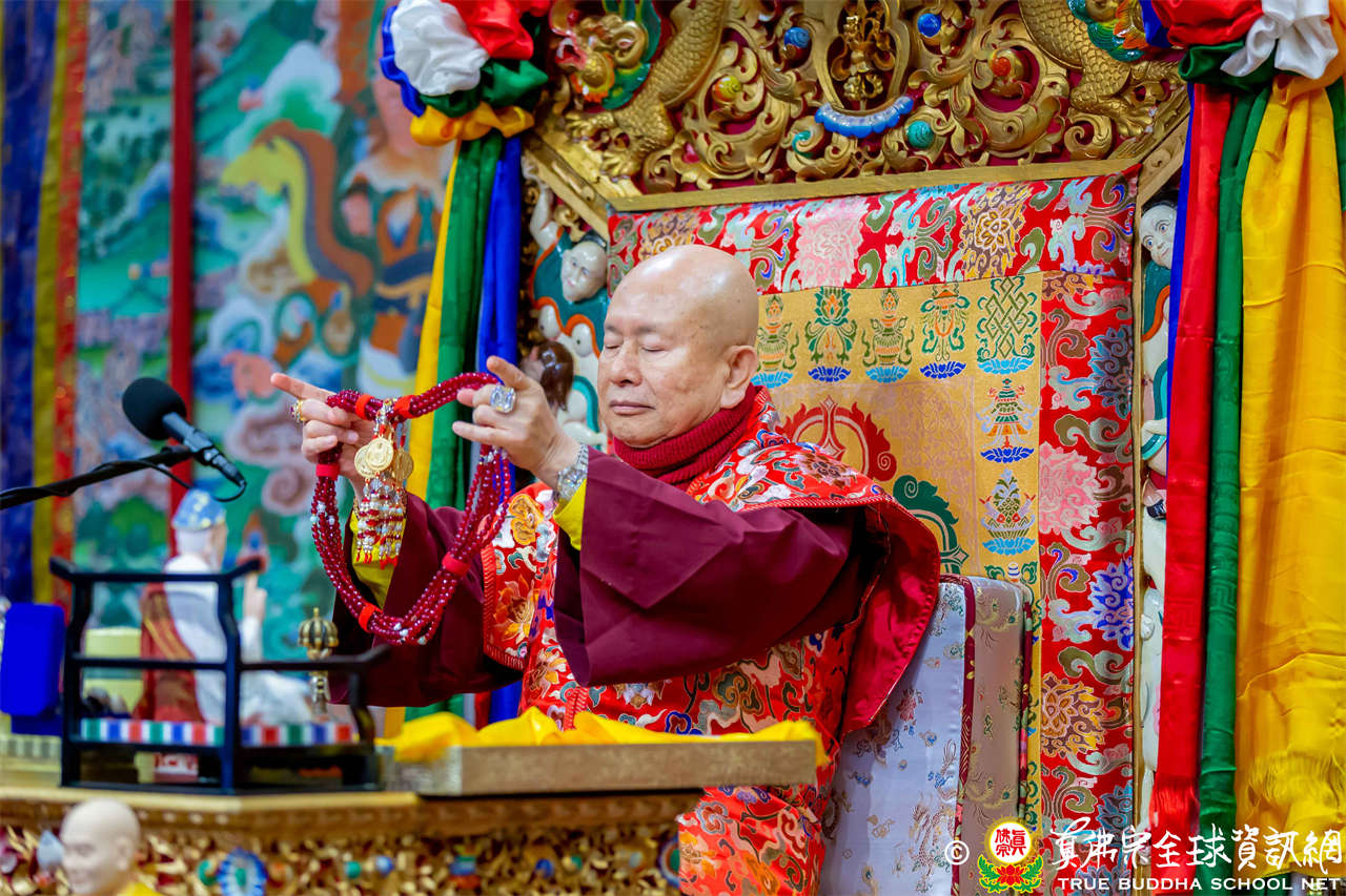 結束精彩的法語開示後,法王慈悲賜授現場與會大眾「阿彌陀佛法」灌頂,法會圓滿落幕。