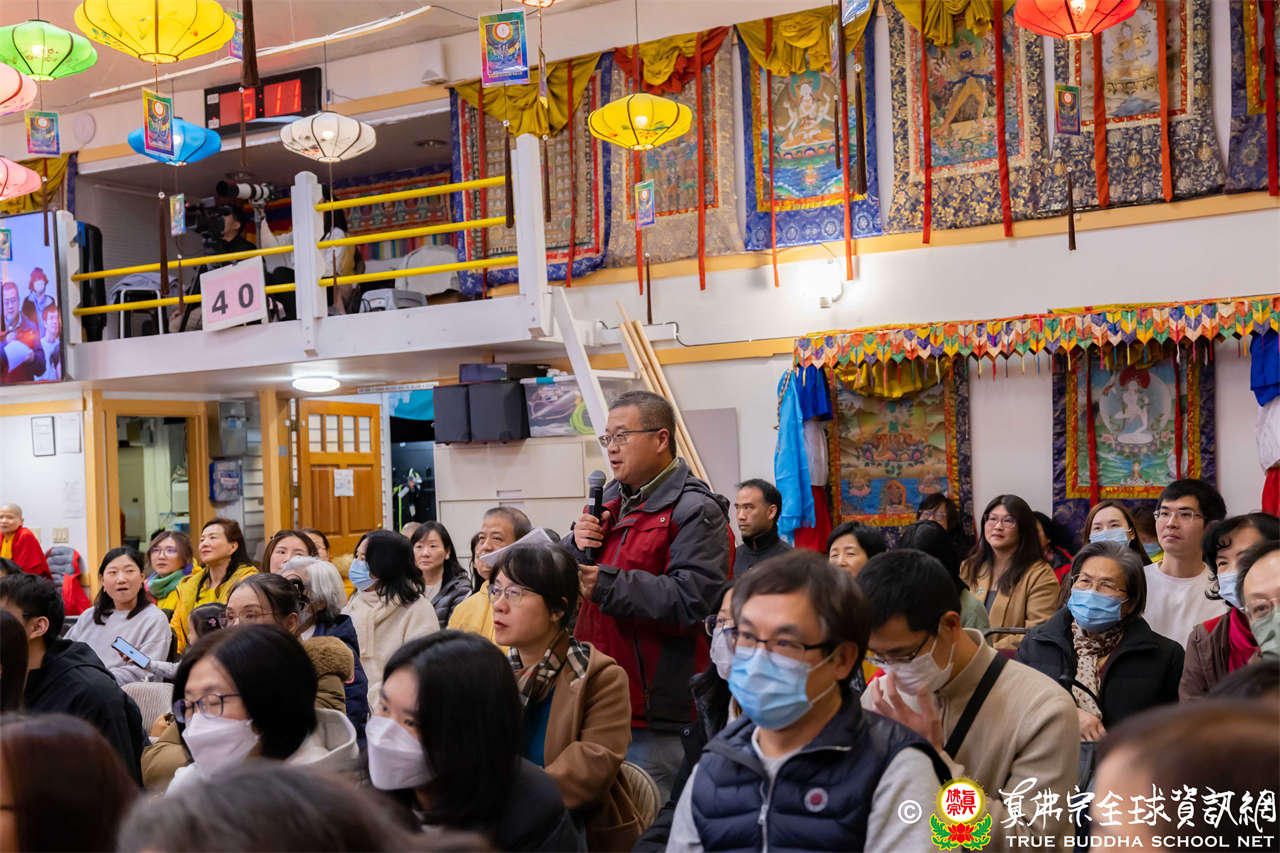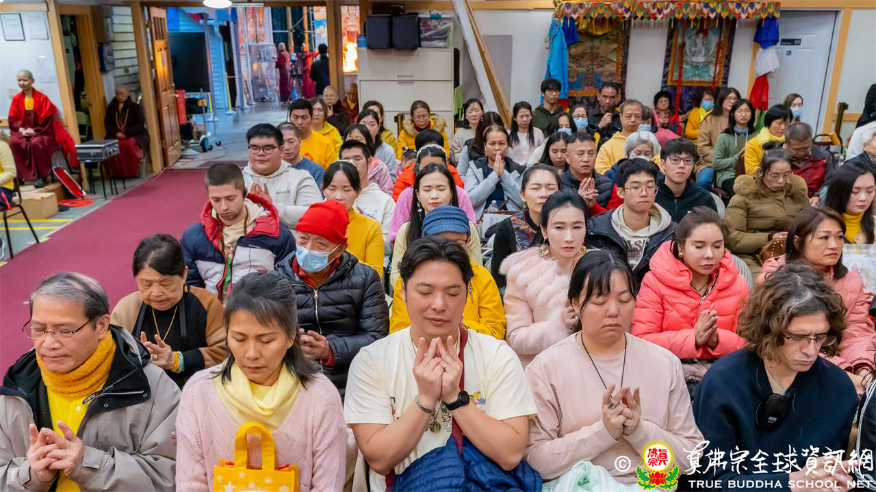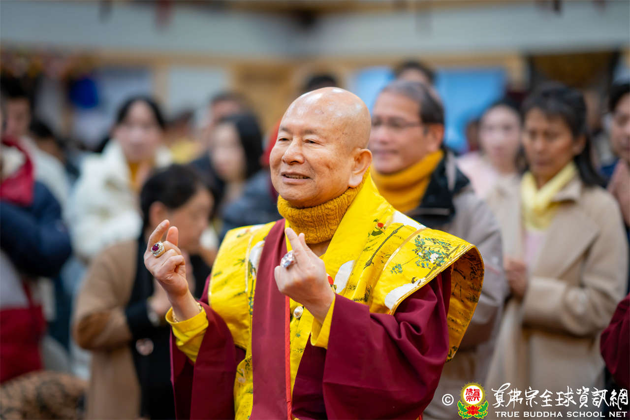法王開示結束,大衆報以熱烈掌聲感恩。接著法王與zoom上弟子問候,並為與會大衆賜予瑤池金母法總灌頂,法會至此圓滿結束。