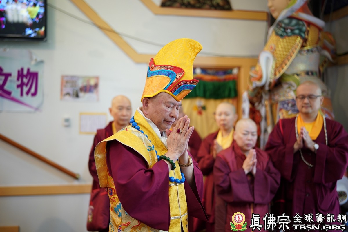 莊嚴殊勝的火供過後,師尊開示,昨天浴佛,今日做「釋迦牟尼佛」護摩火供,很好,很圓滿。當年,釋迦牟尼佛於菩提樹下證悟後,欲入涅槃,是大梵天王及帝釋天勸請佛陀慈悲住世,大轉法輪。釋迦牟尼佛才在娑婆世界三轉法輪 :苦輪、 集輪、 滅輪。一轉法輪教導眾生「苦當知」,知道人間有生、老、病、死苦、愛別離苦、怨憎會苦、求不得苦,活在這世界上的都是煩惱及痛苦,快樂只是暫時的。在第二轉法輪時,再教導眾生把苦及苦因全部集合起來斷掉,就是「集應斷」,就是要斷苦。 第三轉法輪時,教導眾生「滅應證」,證到所有的苦通通消滅。最後,「道應修」,要修「道」,修行成功了,才能證明「滅」,斷除所有的苦,才能離苦得樂,產生極樂。