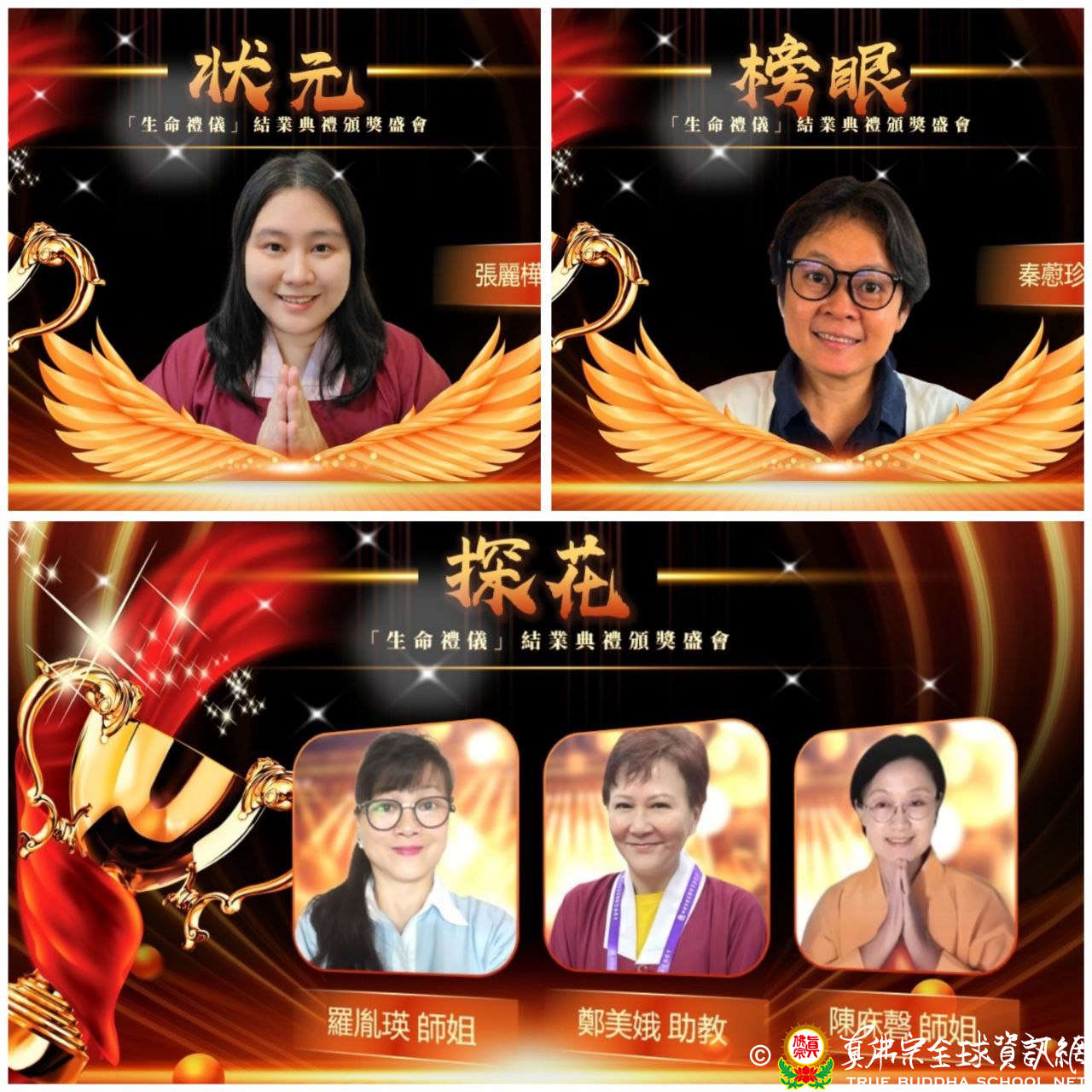 超級勤奮學員獎: Felix Rustam 蓮花俊運、Henry Liemer Wijaya林胜源助教、蓮花金鳳。這三位學員都繳交了36節課的心得報告。