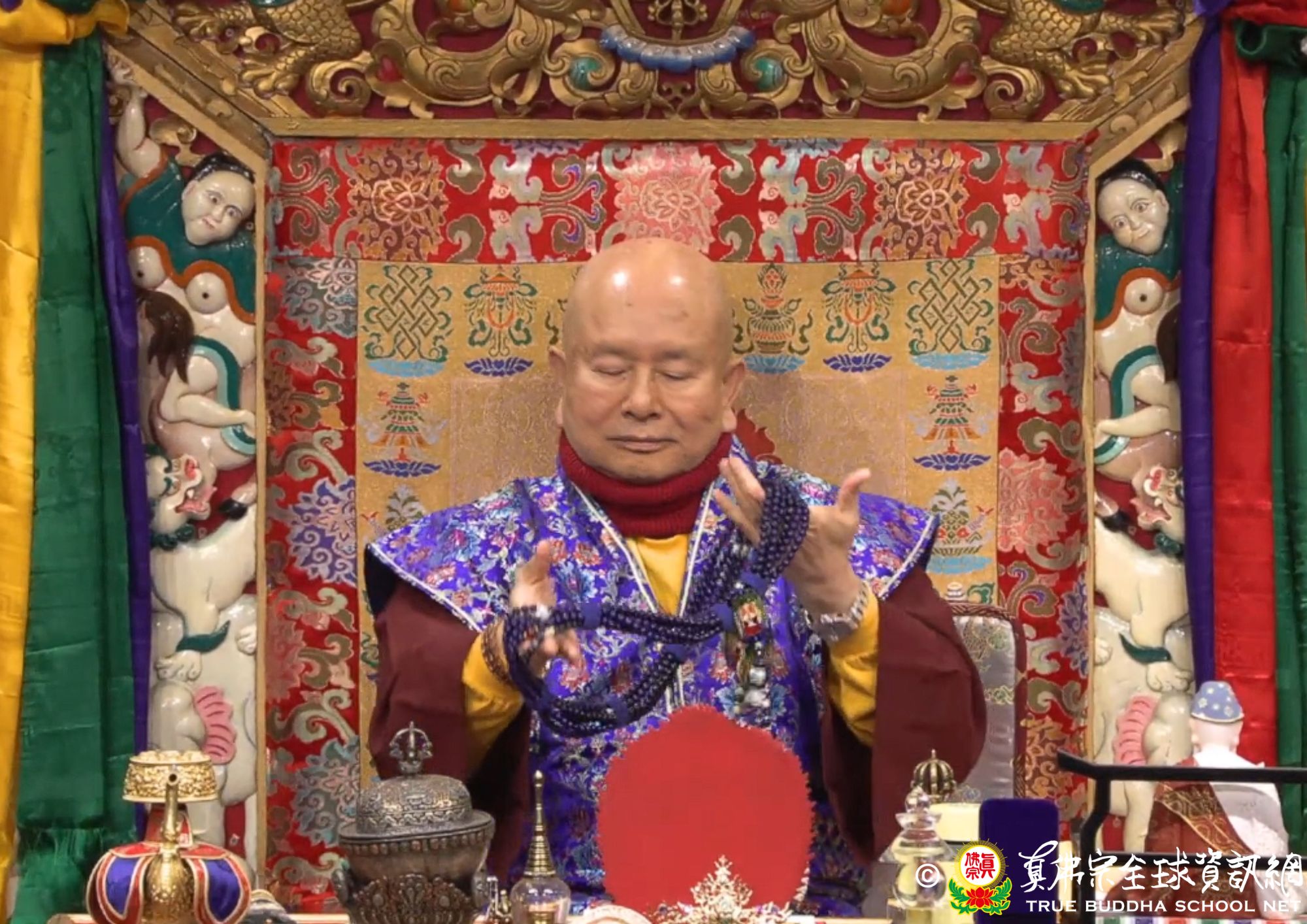 聖尊解釋經義:在那個時間裡面,「寶蓋」跟所有的眷屬一起供養「藥王如來」五個劫。過了這個五劫祂告訴祂的一千位孩子,你們這一千個小孩都要像我一樣,用最志誠的心去供養「藥王如來」。於是這一千位孩子收到了父親的命令,一起供養「藥王如來」,一切都按照「寶蓋」的命令,一切都很好。