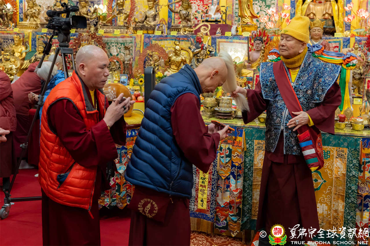 2025年1月18日,西雅圖雷藏寺大雄寶殿裡,蓮生活佛盧勝彥帶領來自世界各地的四眾弟子,同修藥師琉璃光王佛本尊法。聖尊祈請藥師琉璃光王佛加持大衆身體健康、疾病消除、息災、增益、降伏、敬愛皆得圓滿、修法成就。