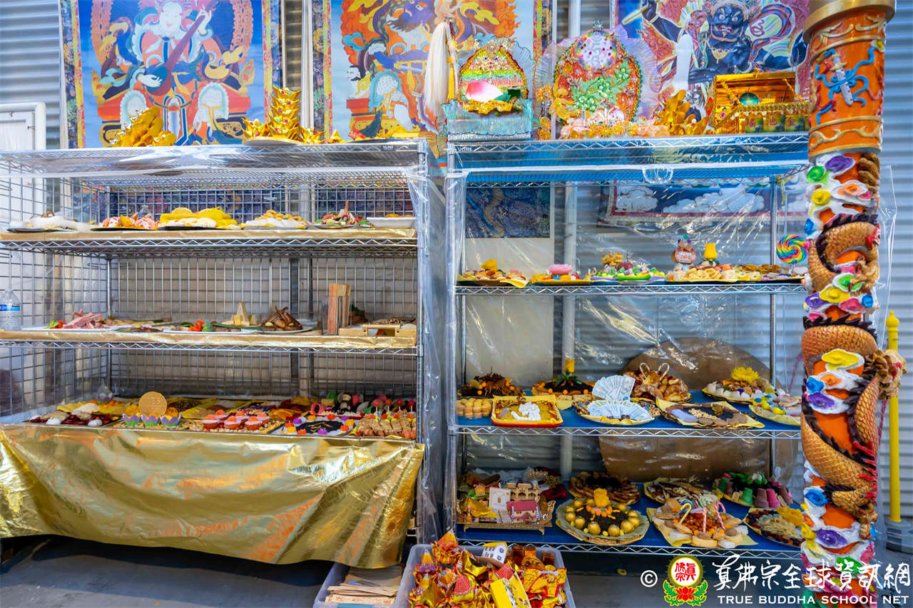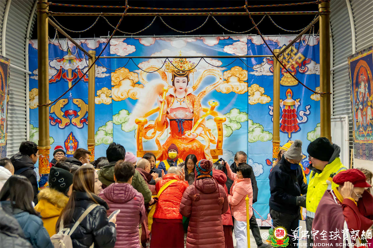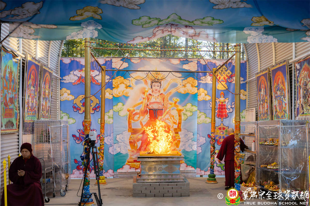 今天的護摩主尊是瑤池金母。沒有瑤池金母,就沒有盧師尊,沒有盧師尊,就沒有真佛宗。在護摩壇的這一尊瑤池金母的唐卡跟供在前面的瑤池金母是天女型的瑤池金母,祂的眼神非常的慈悲。我們真佛宗的瑤池金母是天女型的,是最美麗最年輕的,這是我們True Buddha School的特色。