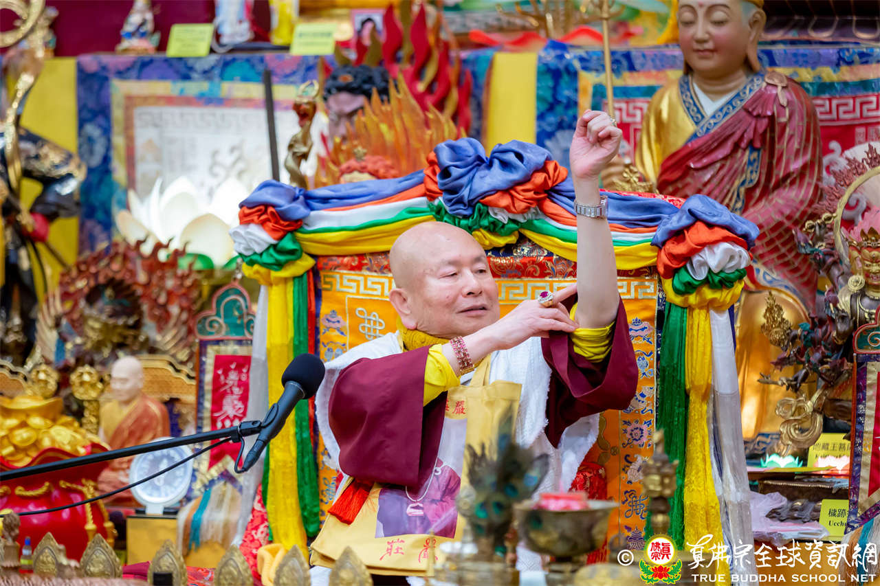 珍貴的開示結束後,師尊慈悲加持大眾「一掃煩惱輕、二掃霉運除、三掃業障去」,人人法喜滿滿,歡欣踴躍。