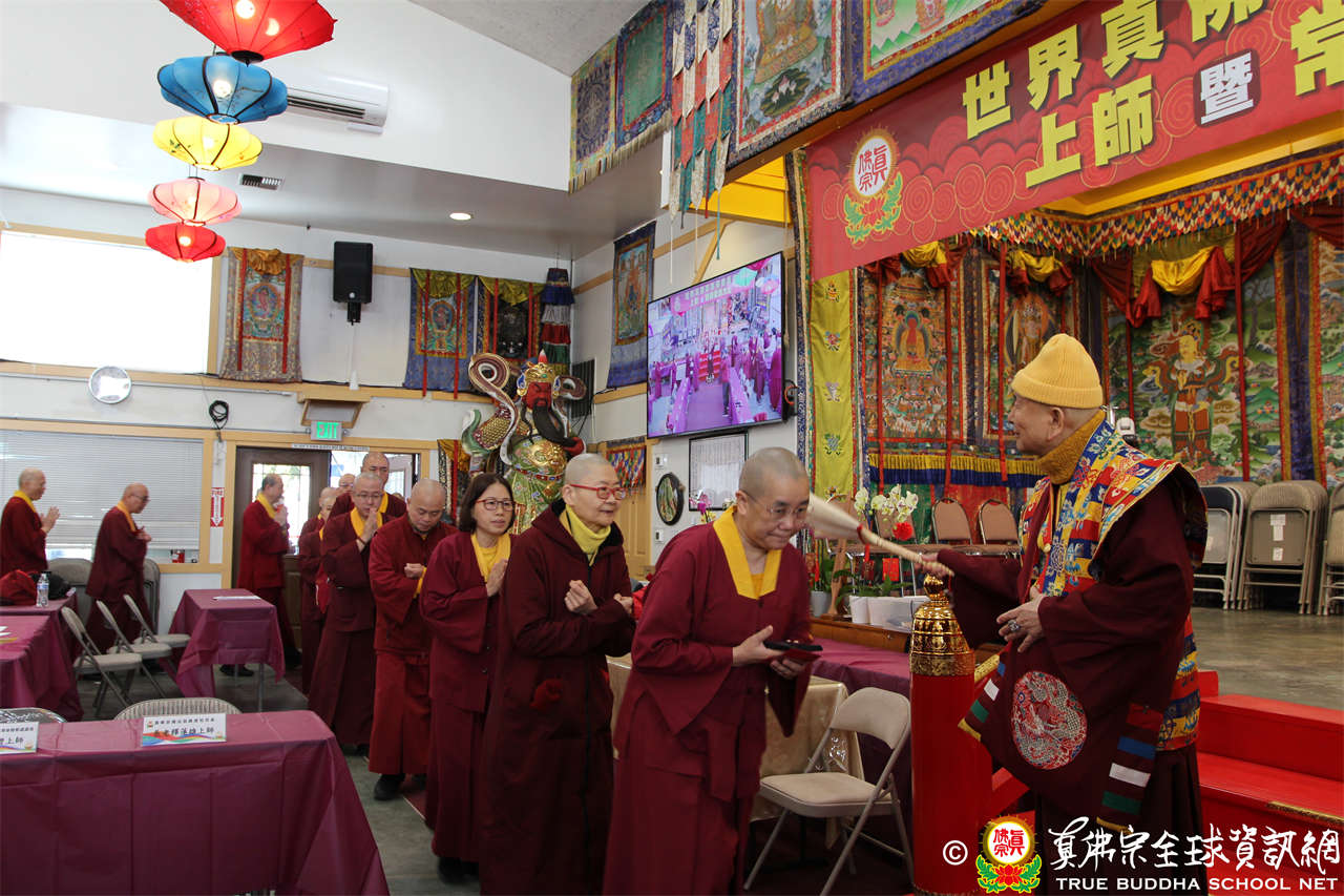 根本上師開示道:學佛行者面對「亂」,以不變應萬變、以靜制動、以定制亂、要不貪不瞋。運用人工智慧製作的佛像,是活的、會動的,不過是讓我們攝心的工具而已。佛法以人工智慧呈現,也要分辨真假,以三法印-諸行無常、諸法無我、涅槃寂靜以及一實相應來印證。空解脫、無相解脫、無取解脫、無作解脫,將四解脫記在心裡,才不會被迷惑,總歸一切都是空,心能定下來,就不會被迷惑。根本上師囑咐上師團要團結,每一位受灌頂的上師,肩膀挑的就是眾生,除了自己實修證悟,也要能教導眾生、幫助眾生成就,每一位上師能帶領數百人數千人數萬以上的人,就是聚沙成塔,如果上師沒有如此做就是只有一粒沙。最後根本上師再叮嚀所有的上師,要教導了義的經典,用正確的佛法,不能偏離正軌。