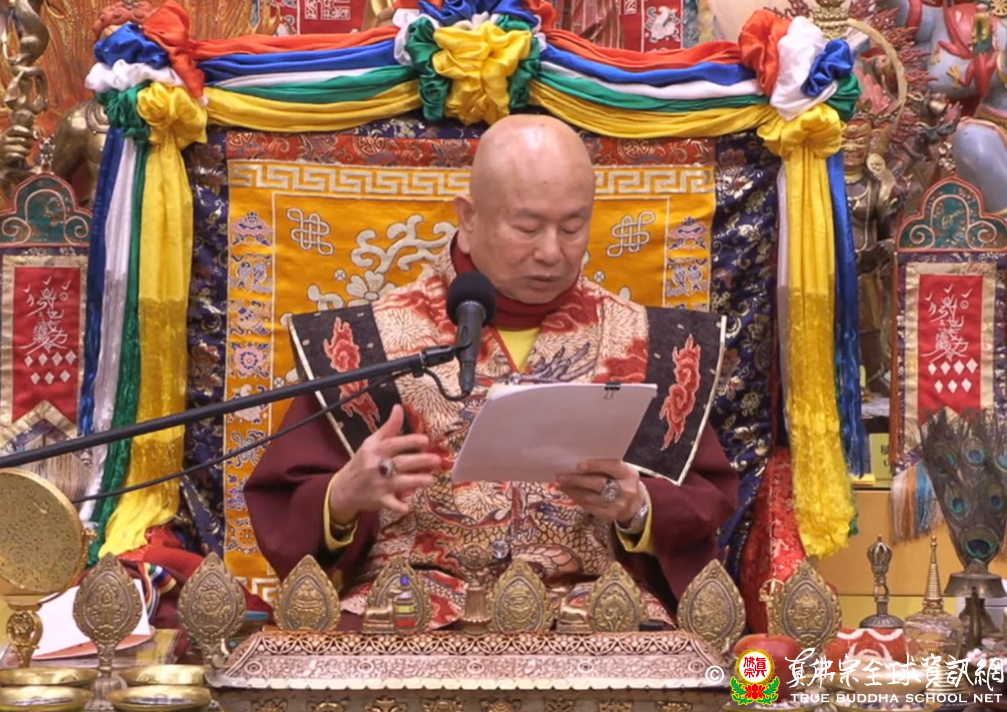 聖尊解釋經義:釋迦牟尼佛要講經之前,會把自己的床坐弄好並且坐在法座上。釋迦牟尼佛在說法時都會說一些比較重要並且了義的道理。這場大法會大家都來聽法,這是不可思議仿佛未曾有的。釋迦牟尼佛說法的聲音就像迦陵頻伽之鳥的聲音,發出來的微妙天音十方法界都聽得到。所有的大菩薩聽到了都前來參加此次的法會。那時候是以文殊師利菩薩為上首。