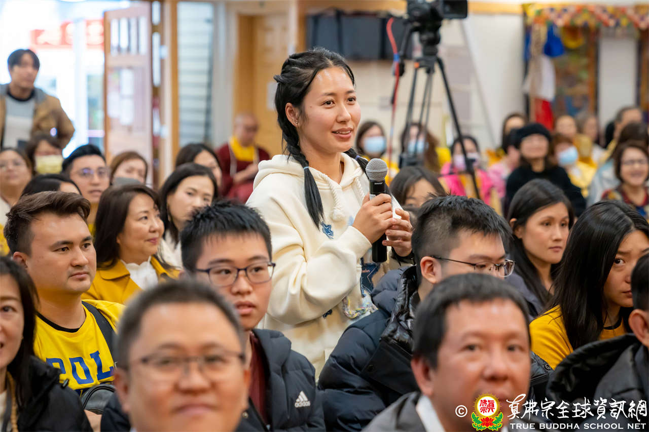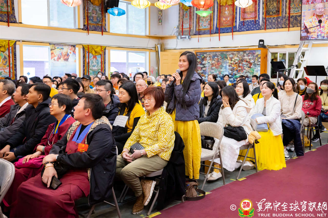 法王講解楞嚴經至此,接著又邀請現場數位見證法王法身者作分享。其中有來自巴拿馬、印尼、臺灣的同門現場分享見證,其中一位得法王指出,是法王前世在日本的侍者,令人嘖嘖稱奇!