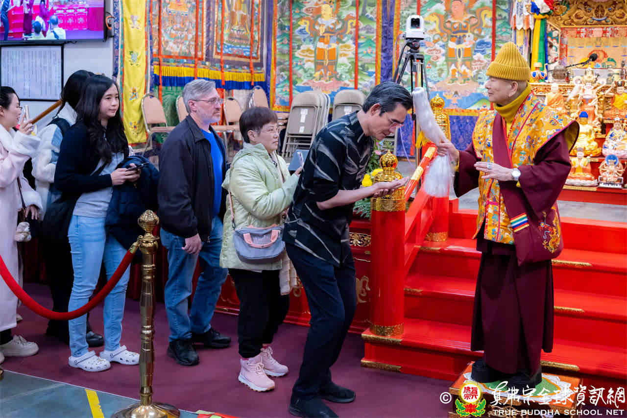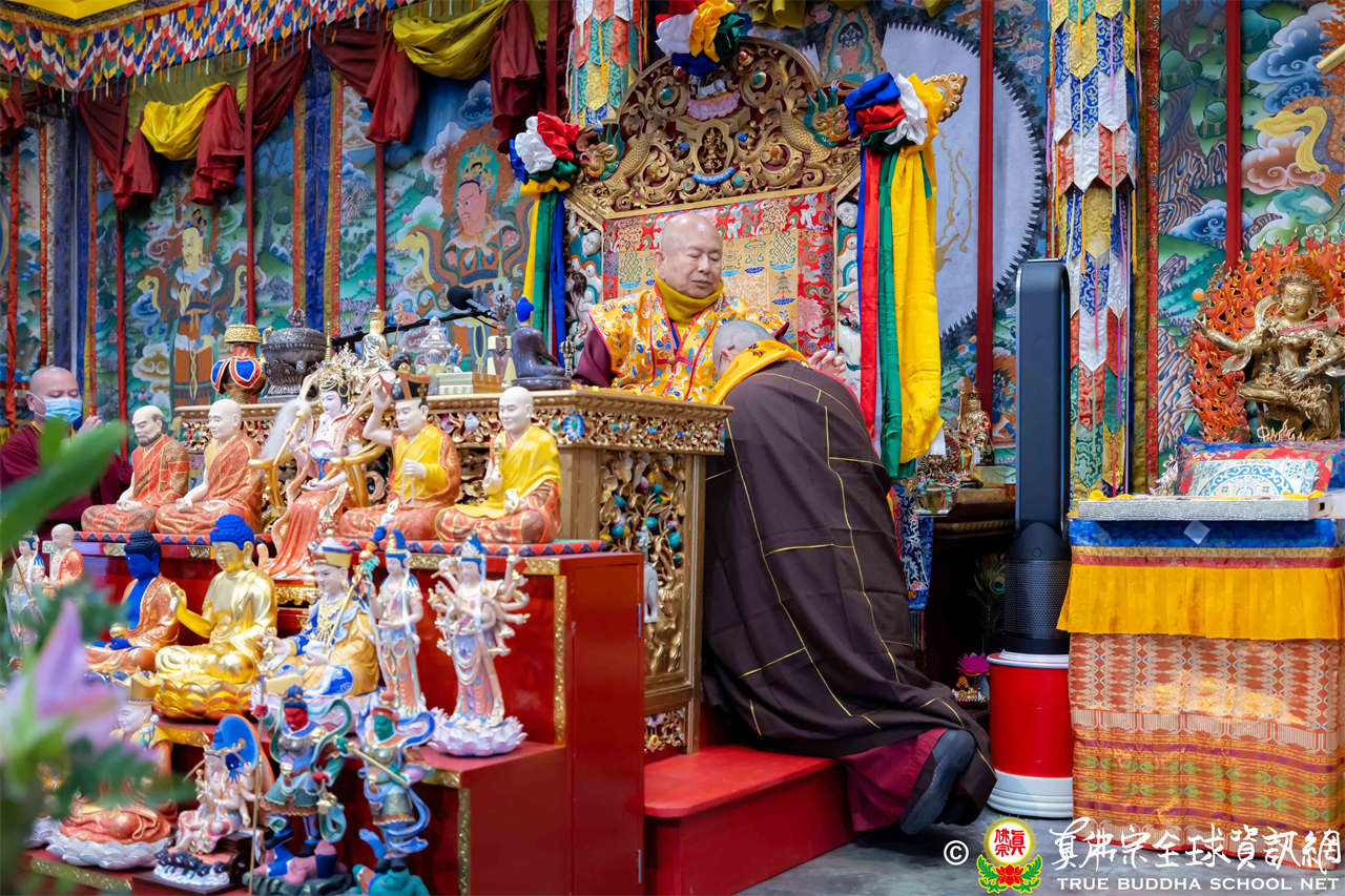 法王開示畢,衆人報以熱烈掌聲感謝。接著法王下座與線上上弟子互相問候,並為與會大衆賜授地藏菩薩法灌頂。法會至此圓滿結束。
