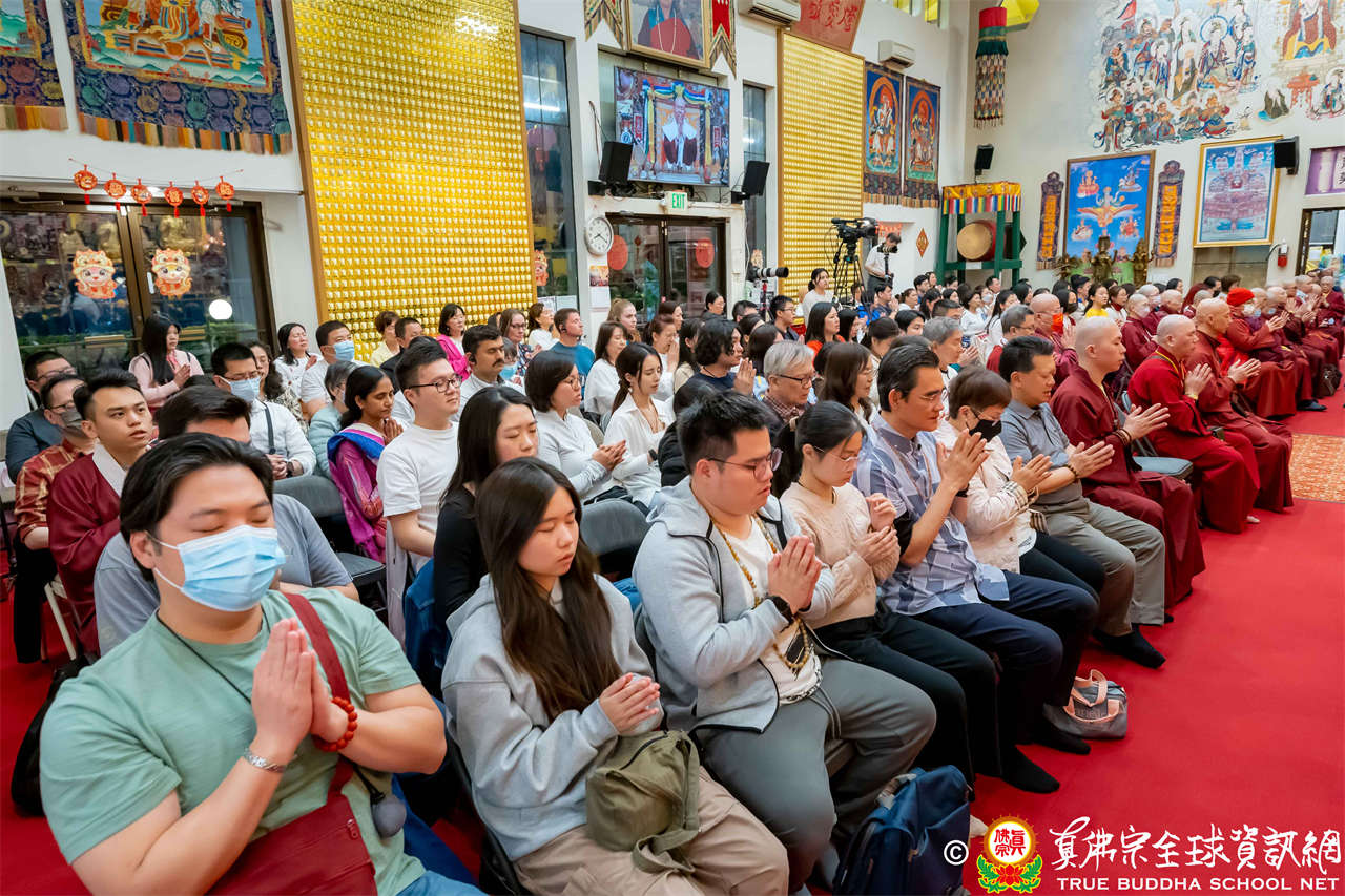 2025年4月5日,四眾弟子齊聚西雅圖雷藏寺,參加本週的觀世音菩薩本尊法同修,聆聽蓮生活佛盧勝彥的殊勝法語開示。與會大眾歡欣踴躍,同霑法喜,共沐佛恩。