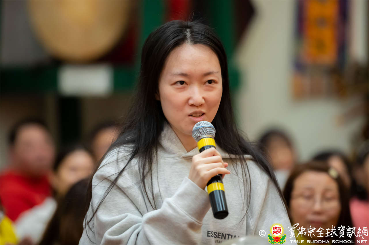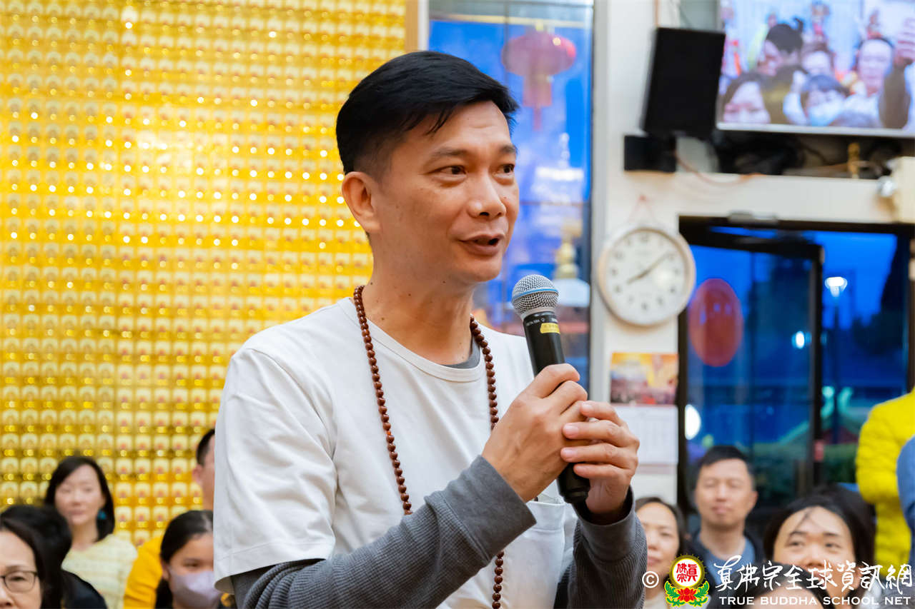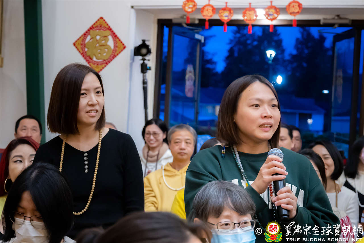 聖尊精闢寶貴的法語開示後,慈悲為新皈依弟子做皈依灌頂,然後加持大悲咒水,開光佛像,最後持佛麈一一加持與會大眾。