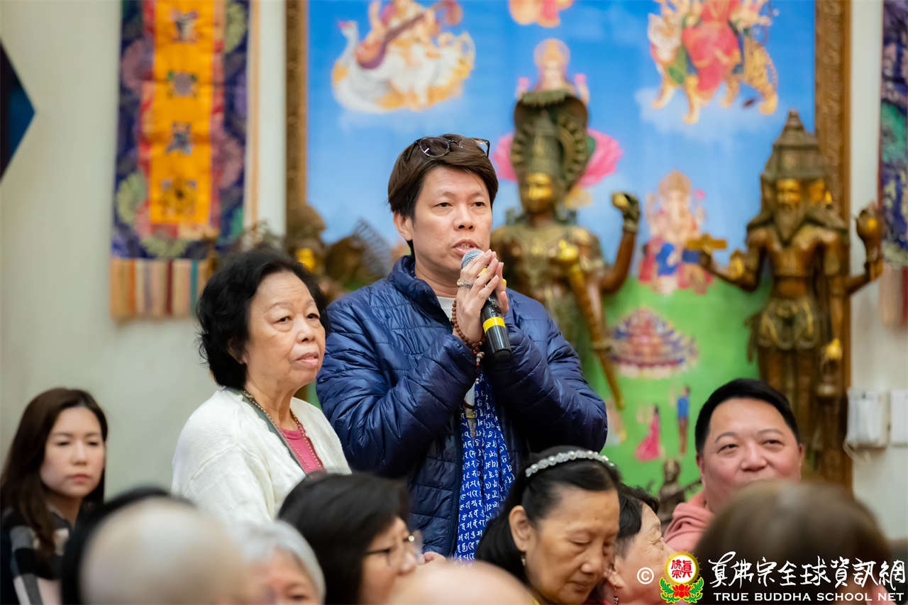 同修圓滿結束後,聖尊開示,蓮華生大士是藏密第一位祖師,由蓮花所化生,是真正的蓮花童子,師尊曾經在打坐時進到最深入的定,得到祂的秘密傳承灌頂。從古至今那麼久的歲月,還能得到祂的灌頂,是因為蓮華生大士曾說過,你只要用心念誦我的心咒,敬師、重法、實修者,隨時祈請祂都會現身。其實今晚同修一開始,蓮華生大士便降臨在現場。
