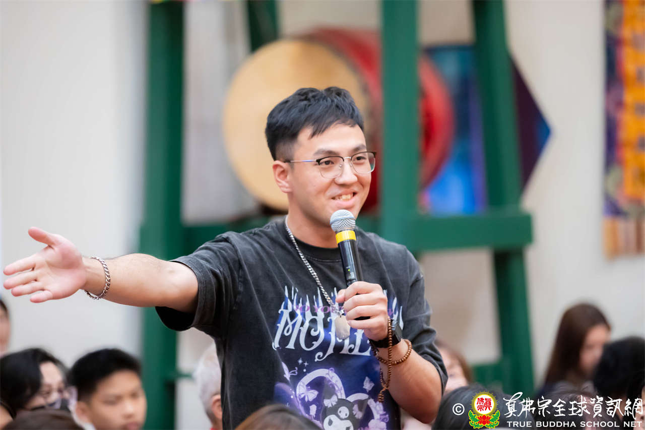 聖尊請在座的同門見證,其中有蓮彥上師、蓮喜上師,及來自新加坡的蓮花家欣師姐,分享各自看見蓮師現身放光給大眾加持的種種神蹟。