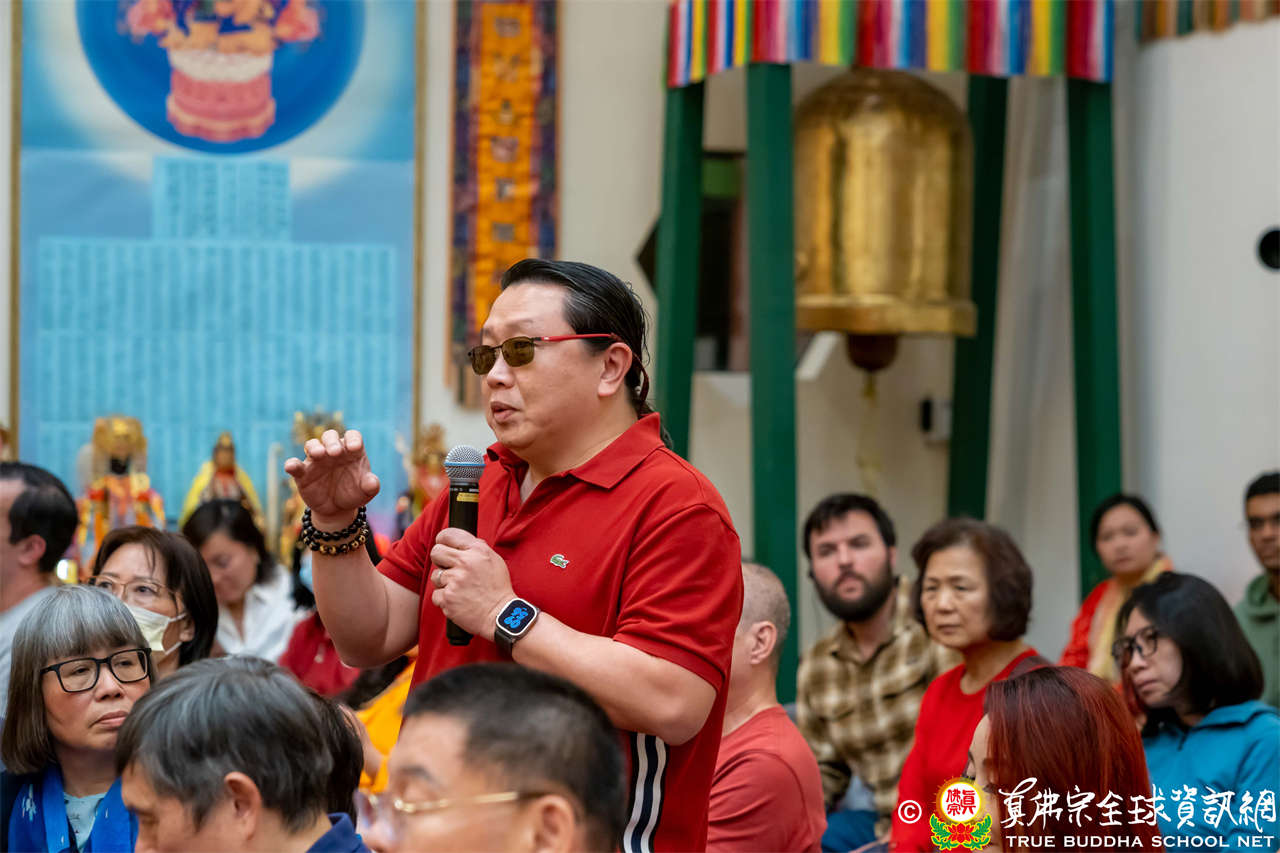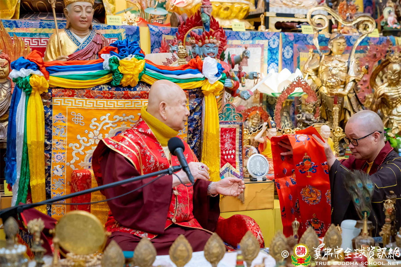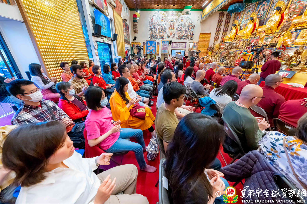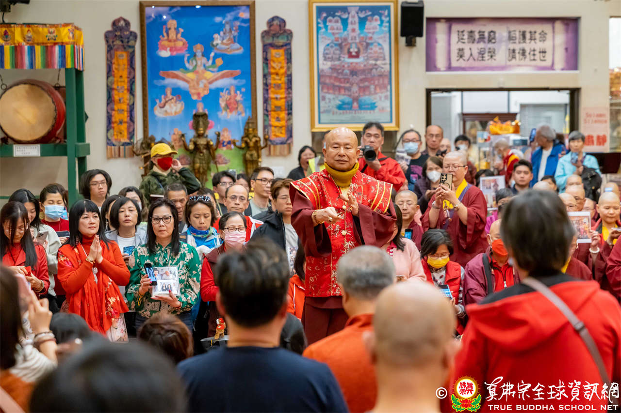 在殊勝珍貴的法語開示之後,聖尊為新皈依者進行皈依灌頂,並開光佛像、加持大悲咒水、持拂塵加持與會大眾。感念聖尊慈悲不捨眾生,弘法度眾不辭辛勞,日日年年如此,祈願聖尊佛體康泰,吉祥如意,弟子眾等惕勵精進,自度度他,六度齊修,以圓成菩提。