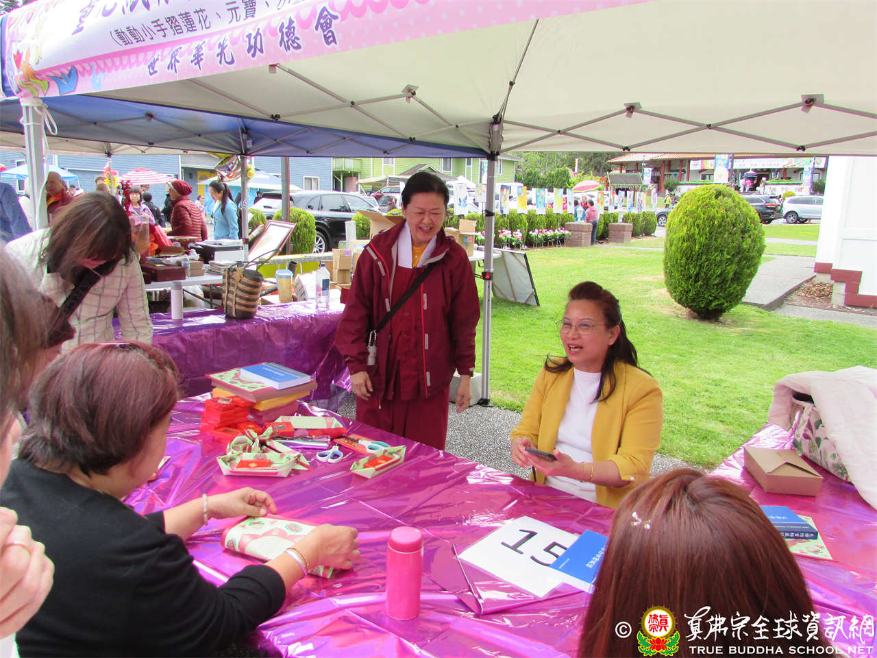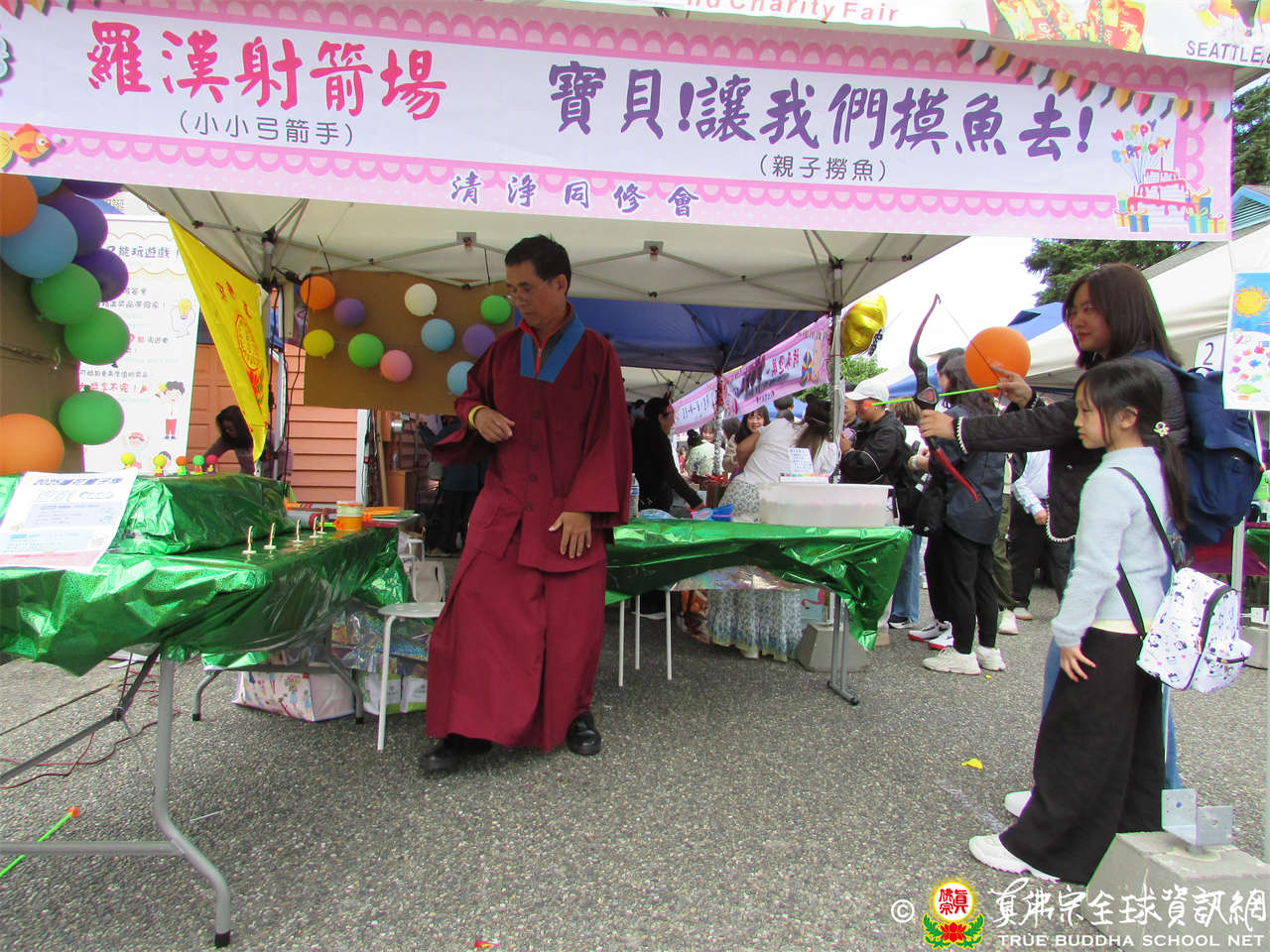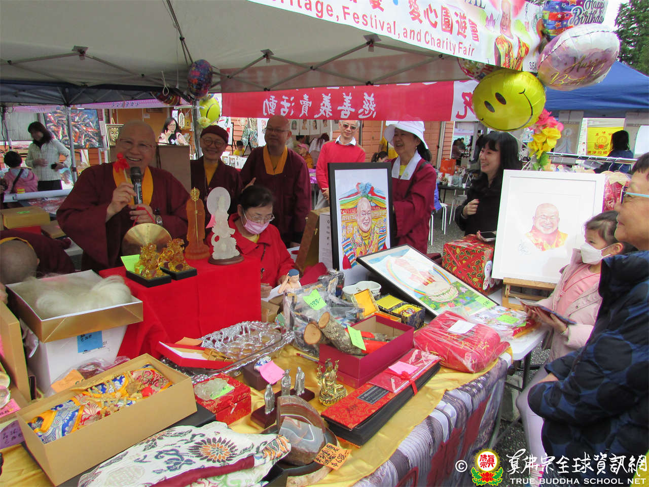 今日歡慶聖尊蓮生活佛佛誕,同時從今起一連2天舉辦愛心公益園遊會,各攤位的收入全數捐做慈善布施,幫助貧苦眾生。