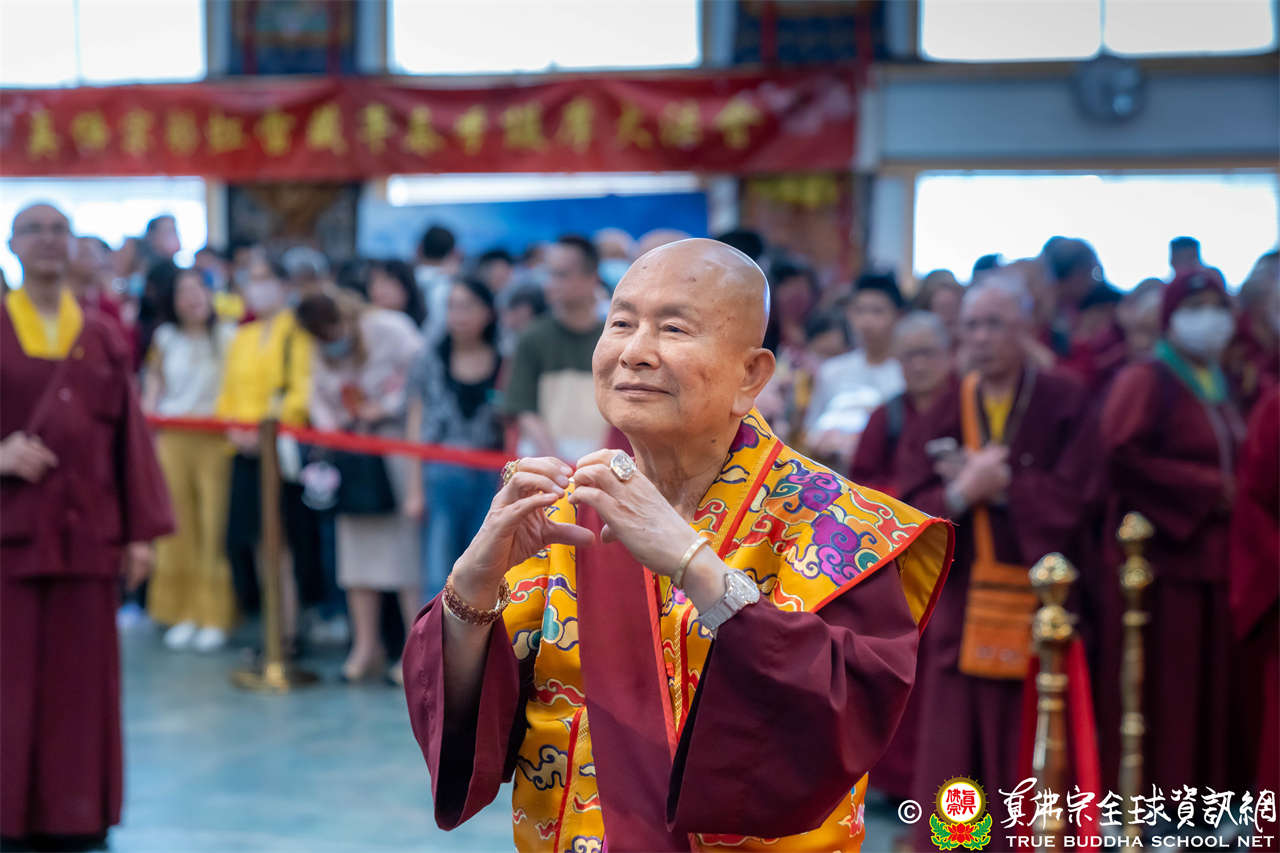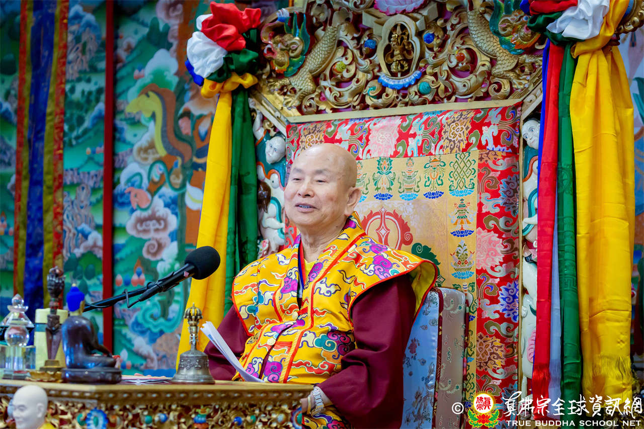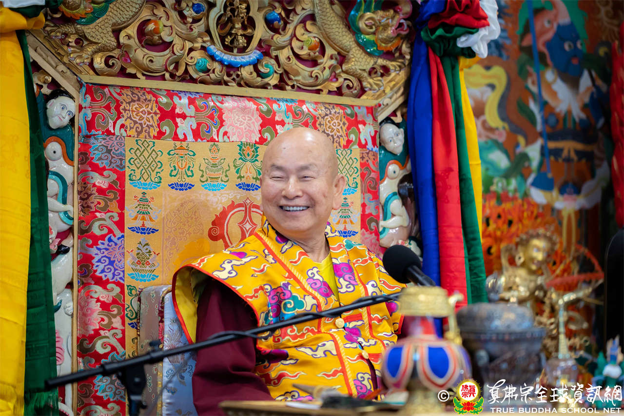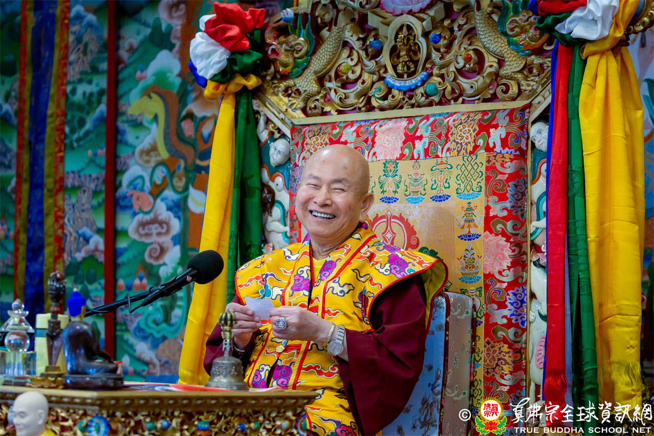 「現在八十多歲了,上法座睡覺,下法座也是睡覺。昨晚回家臉都沒洗,一閉眼天就亮了,許多事情都來不及做。」法王也分享自己皮膚濕疹(eczema)的療癒經過,感謝新加坡秀金師姐的協助,笑稱可能是瑤池金母或虛雲老和尚「派來的」:以前蜂窩性組織炎,是虛雲老和尚加持。這次濕疹沒看到他來,是不是改派這位師姐來?
