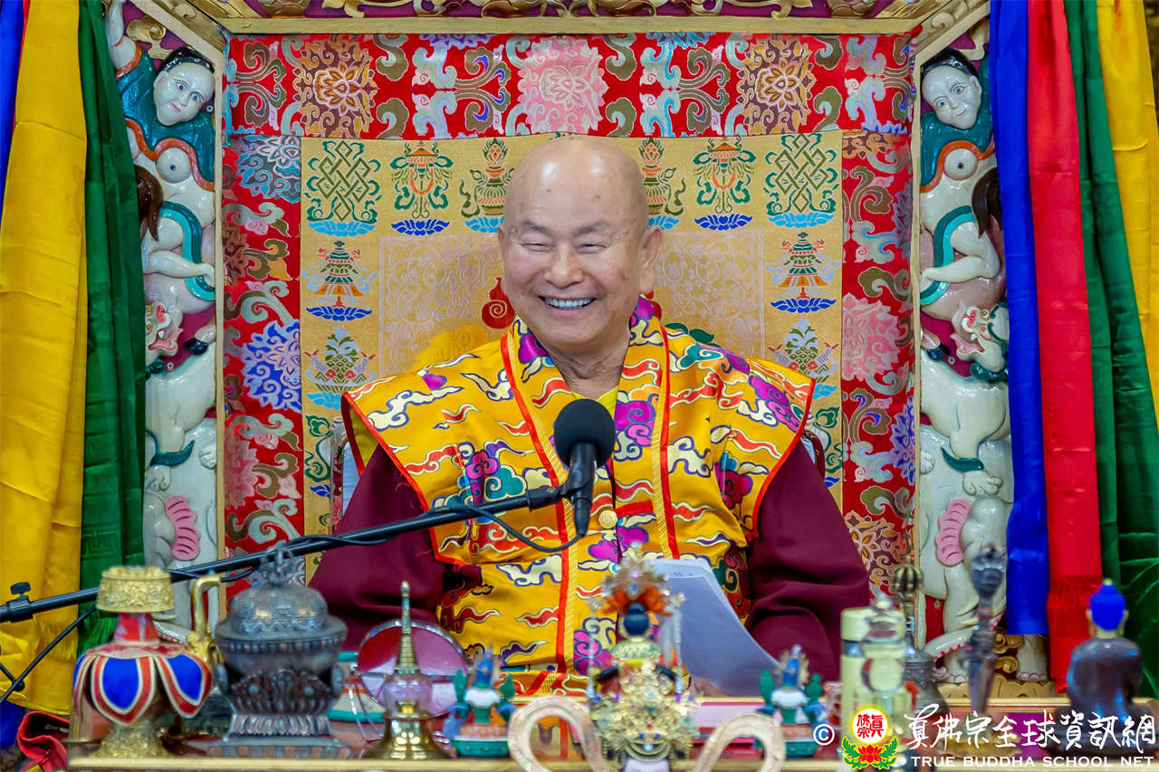 法王進一步說明,不少同門透過直播看法王進行「大幻化網金剛」或「不動明王」加持時,只要內心誠懇,也能獲得真實效果,甚至病痛改善。法王最後道「所以可以的,以後再求甘露水。」