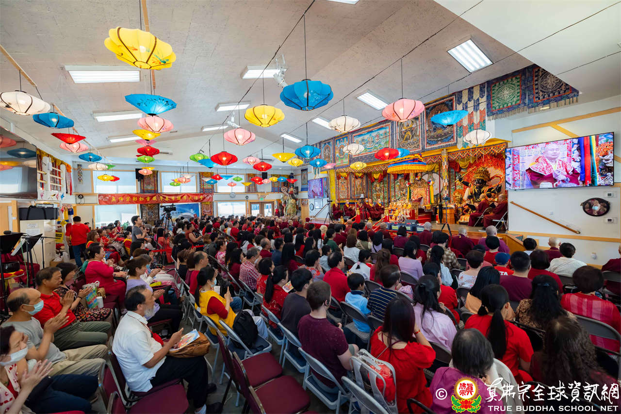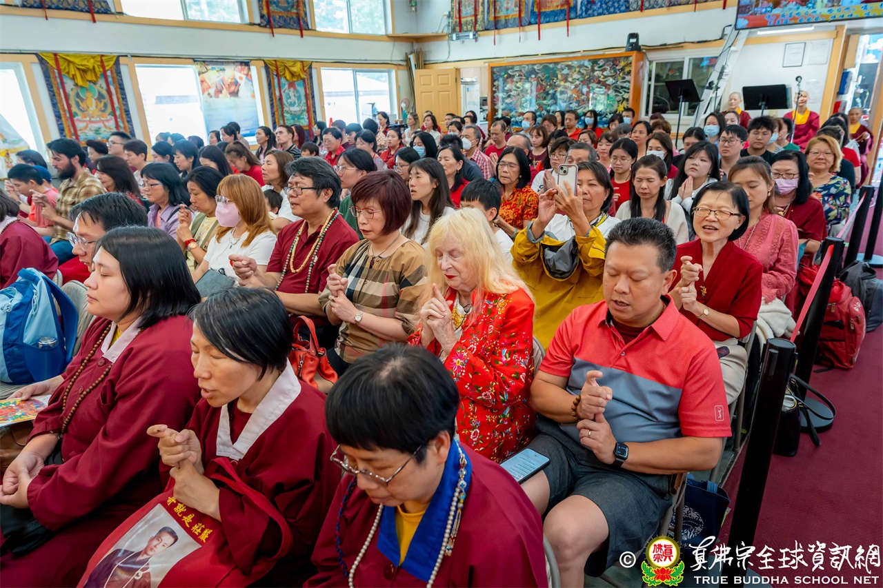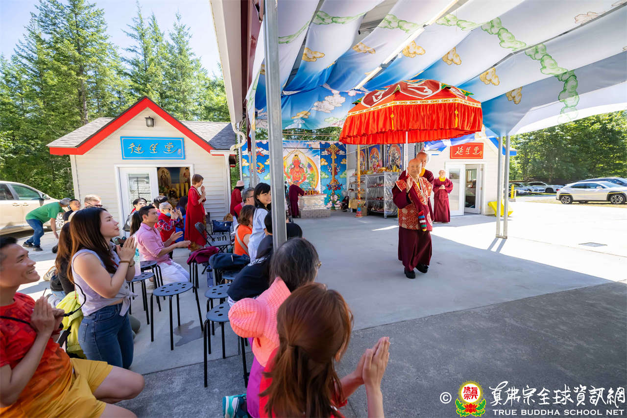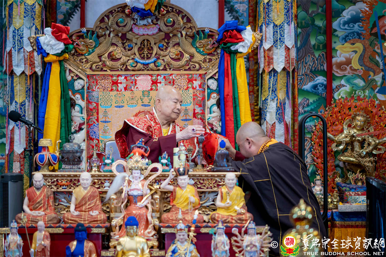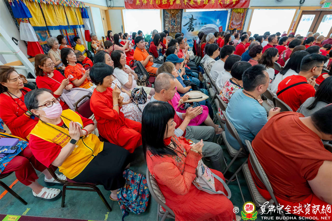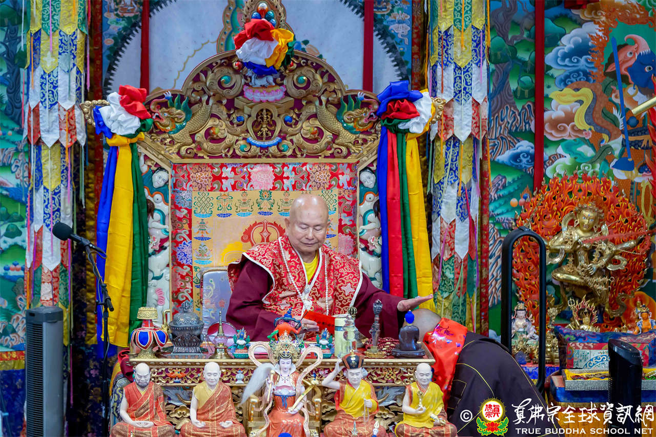 法王開示畢,衆人報以熱烈掌聲感謝。接著法王下座與綫上弟子互相問候,並為與會大衆賜授勾財天女法灌頂。法會至此圓滿結束。