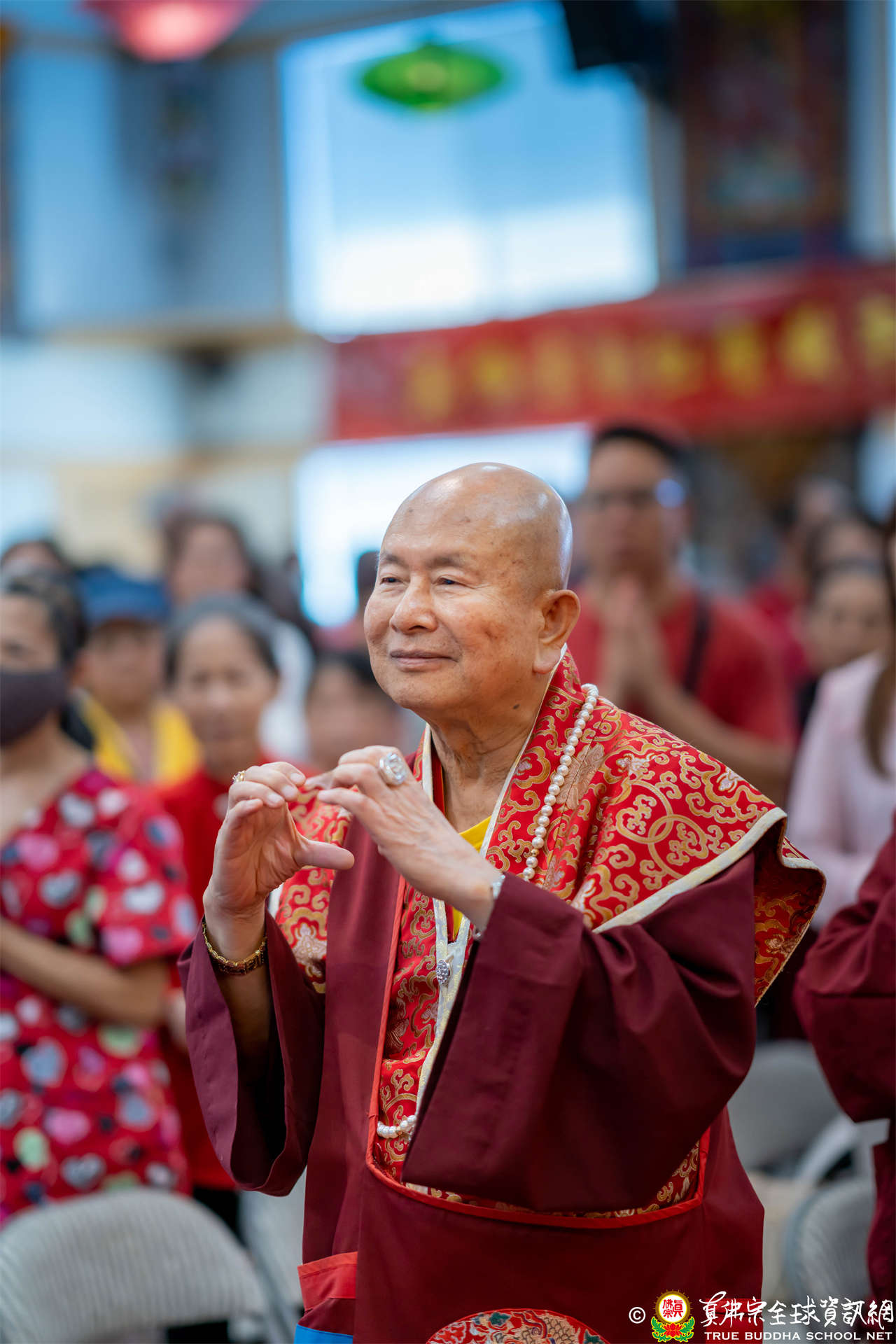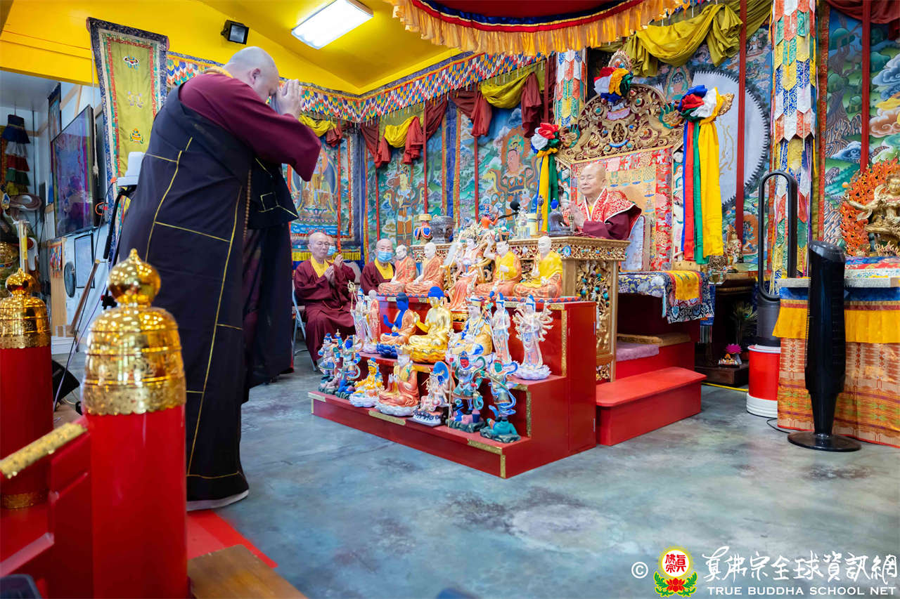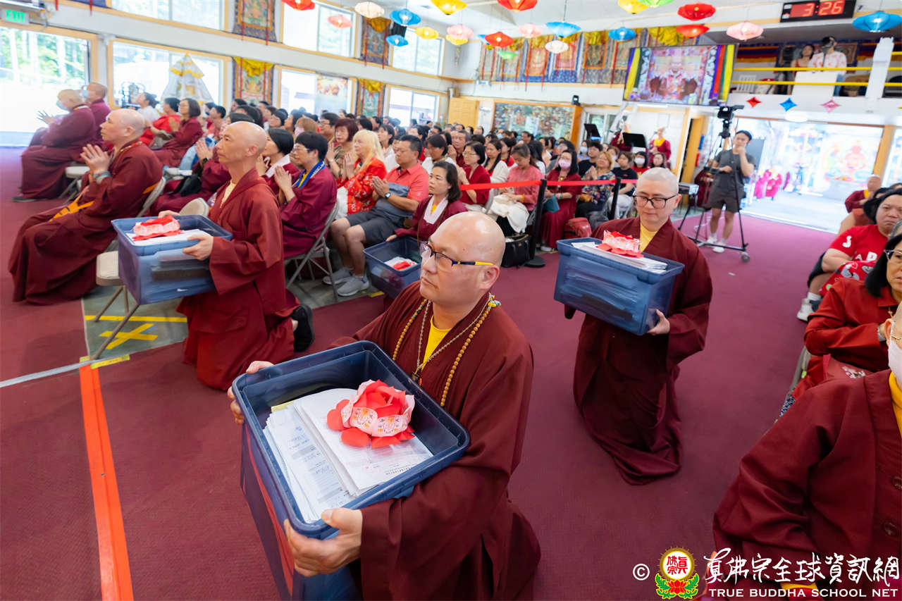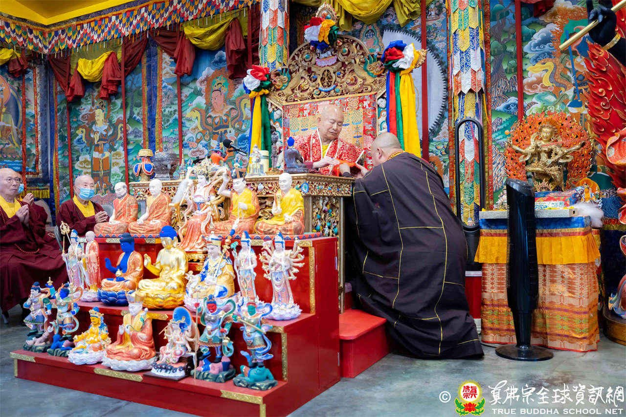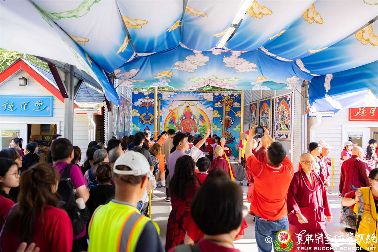 法王開示畢,衆人報以熱烈掌聲感謝。接著法王下座與綫上弟子互相問候,並為與會大衆賜授勾財天女法灌頂。法會至此圓滿結束。