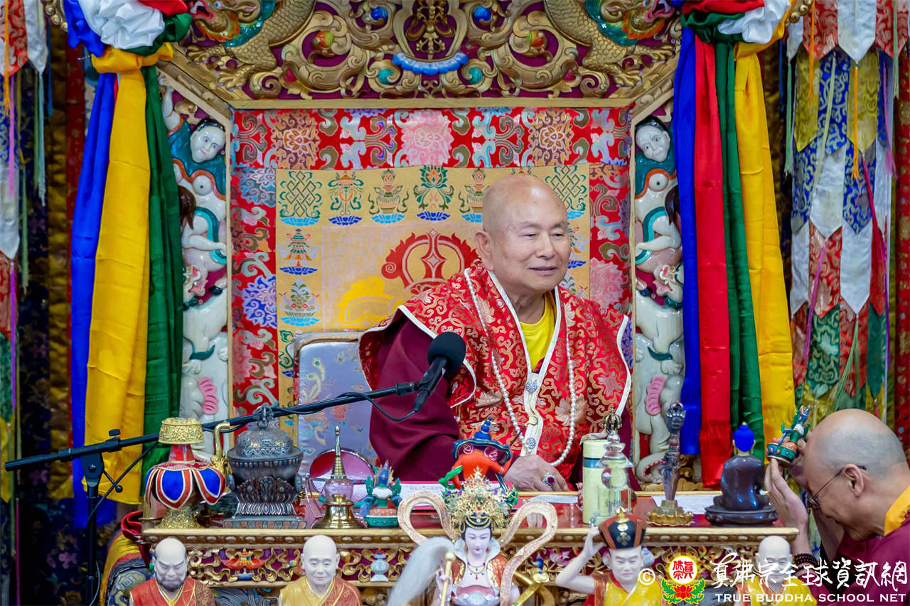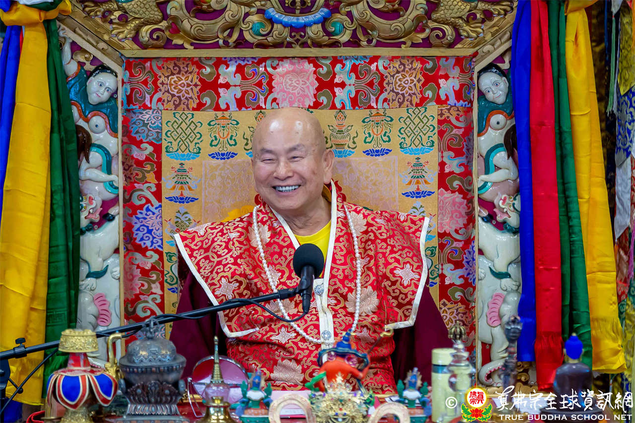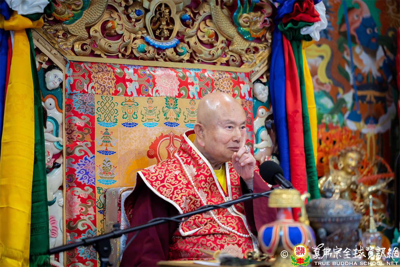 接著,法王繼續講解《大佛頂首楞嚴經》〈卷第二〉:「阿難白佛言:世尊,必妙覺性,非因非緣。世尊雲何常與比丘。宣說見性具四種緣。所謂因空因明,因心因眼,是義雲何。佛言:阿難。我說世間諸因緣相,非第一義。阿難。吾復問汝。諸世間人,說我能見。雲何名見。雲何不見。阿難言:世人因於日月燈光,見種種相,名之為見。若復無此三種光明,則不能見。」