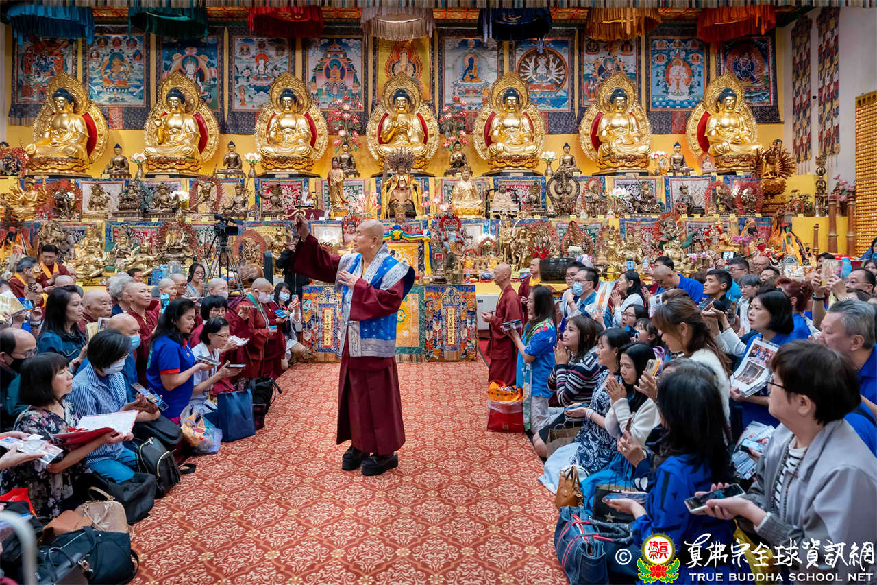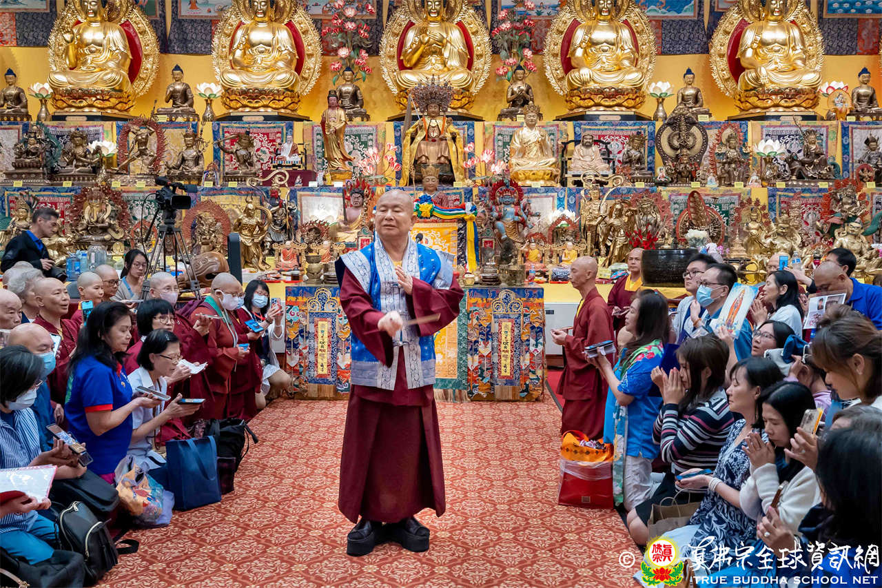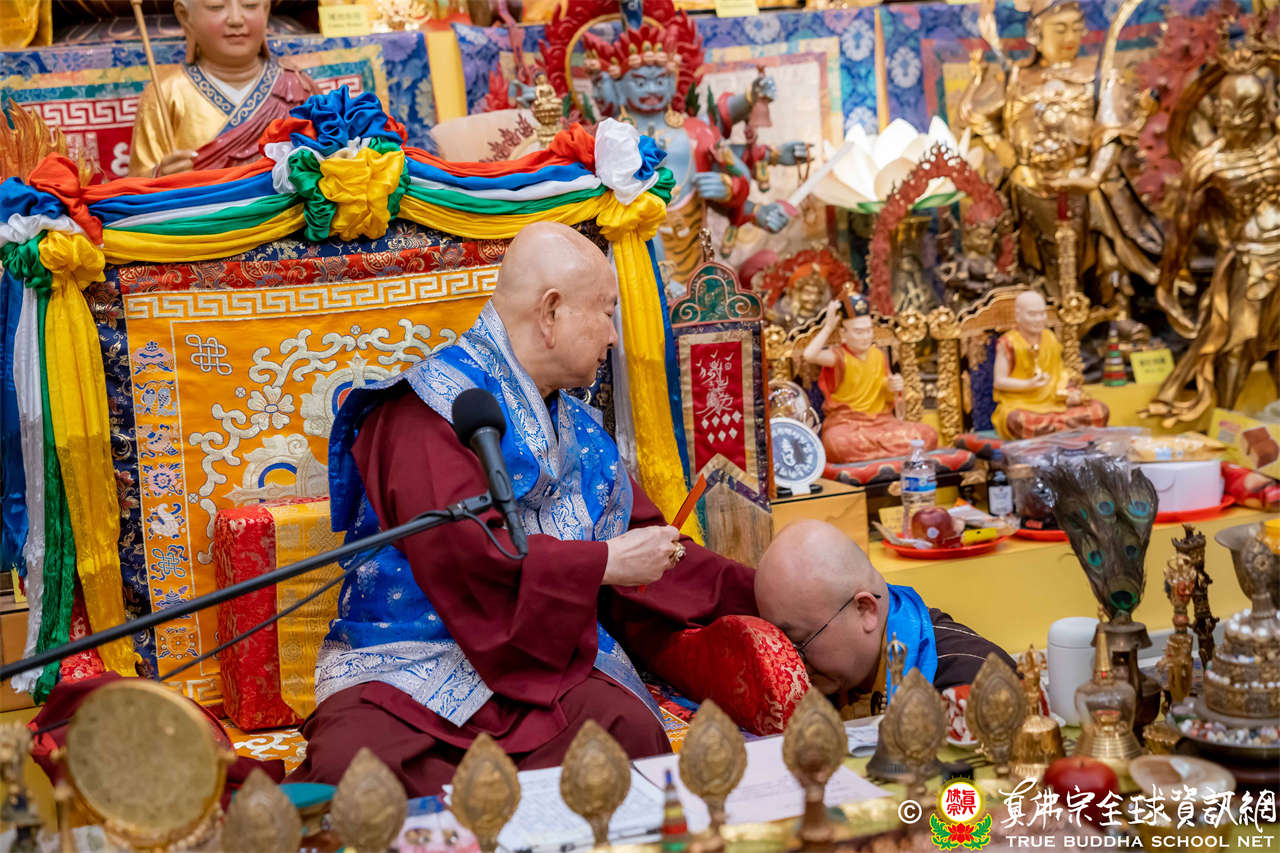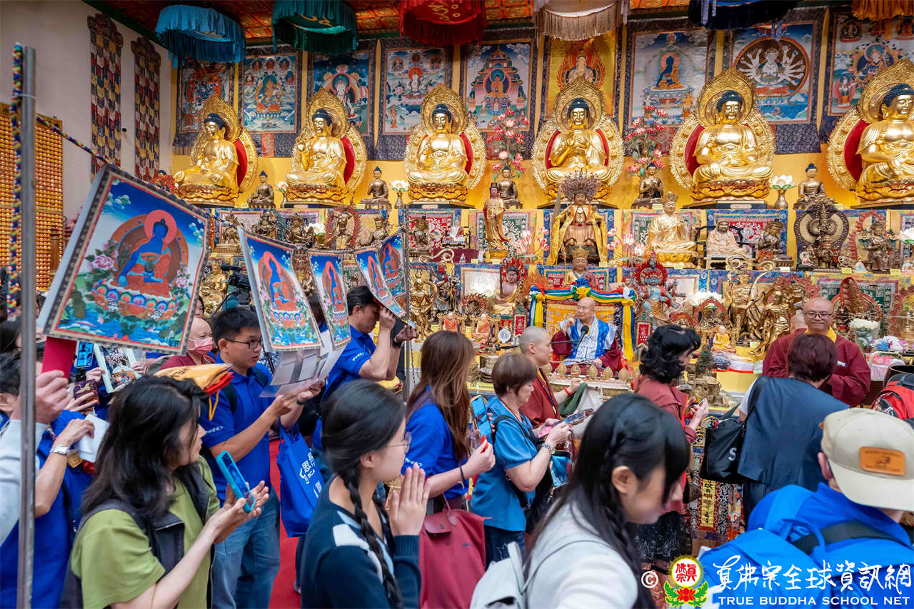 聖尊精闢充滿法味的講經開示結束後,慈悲加持大悲咒水,及為佛像開光。聖尊亦加持主尊灌頂幡,為求皈依者賜授皈依灌頂並為與會大眾加持。