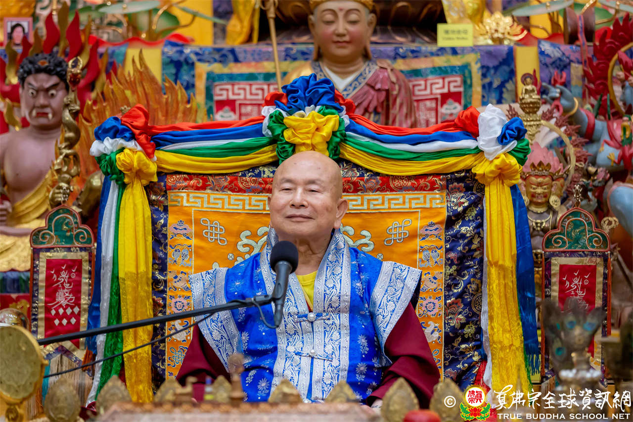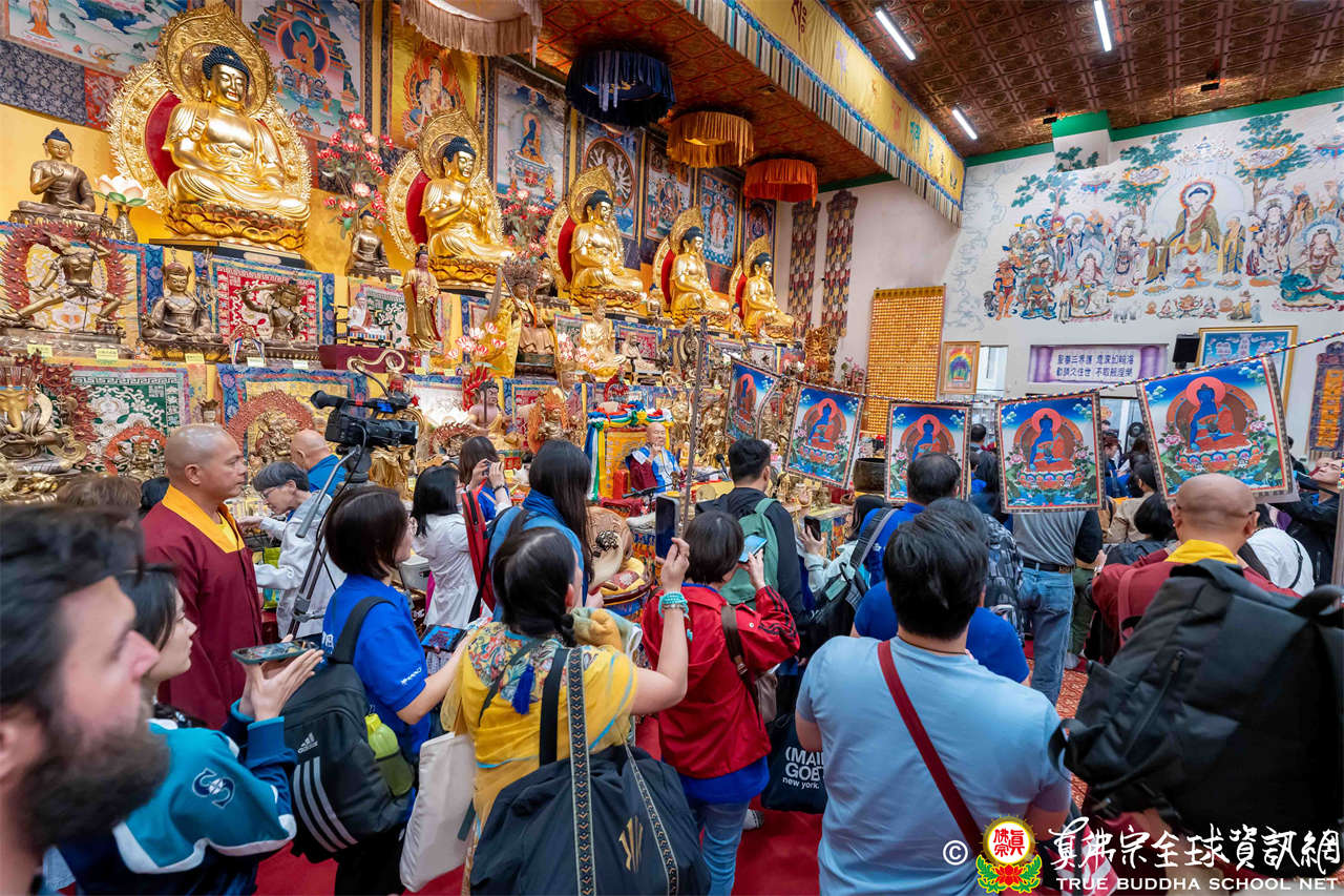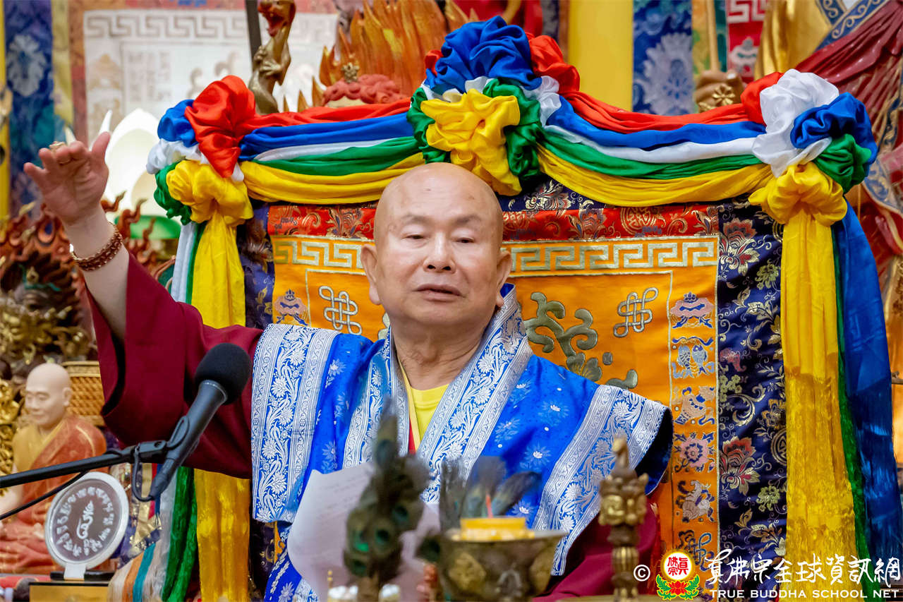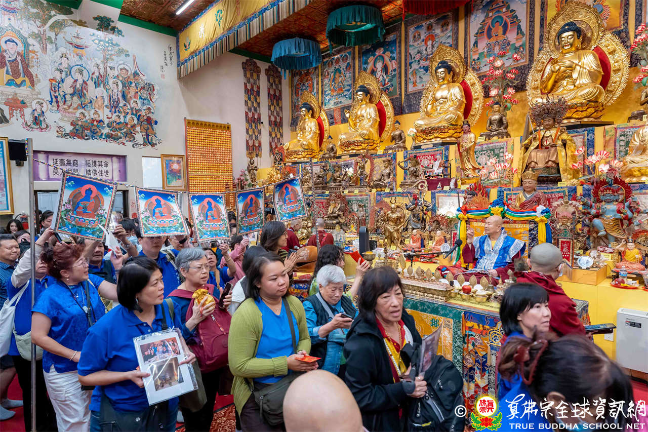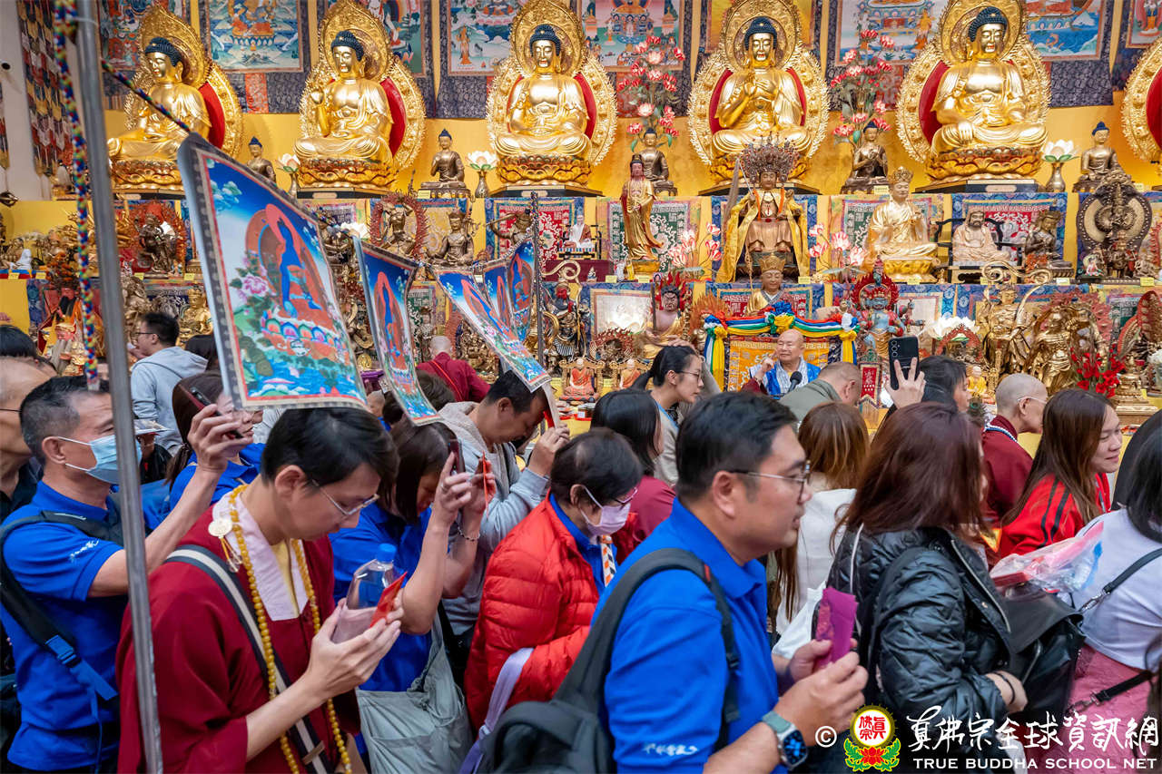 聖尊精闢充滿法味的講經開示結束後,慈悲加持大悲咒水,及為佛像開光。聖尊亦加持主尊灌頂幡,為求皈依者賜授皈依灌頂並為與會大眾加持。