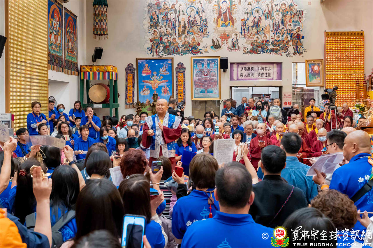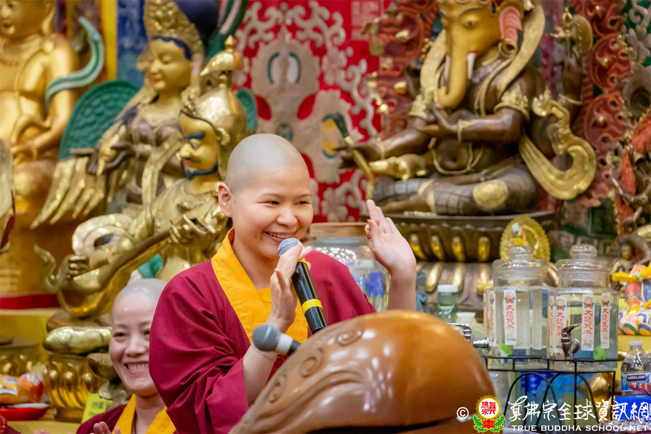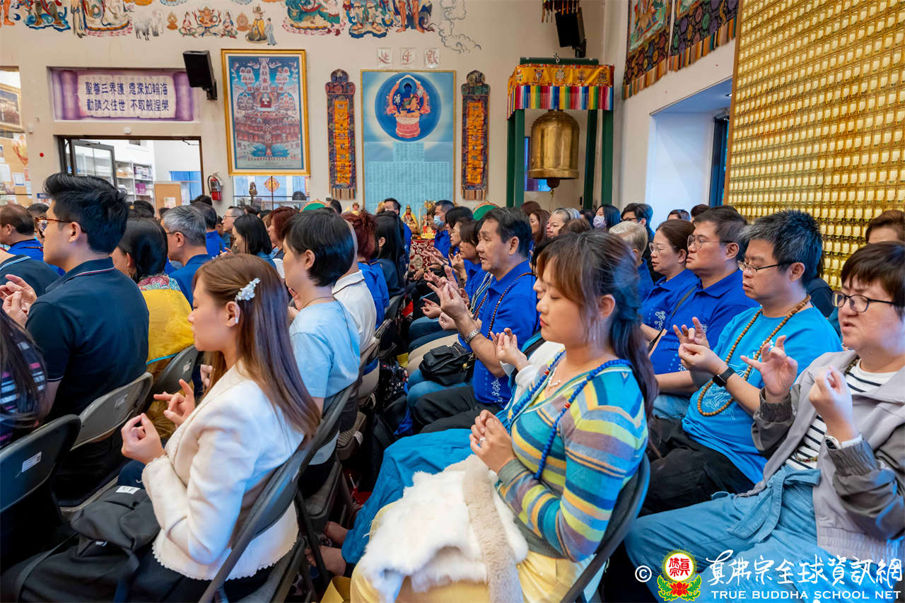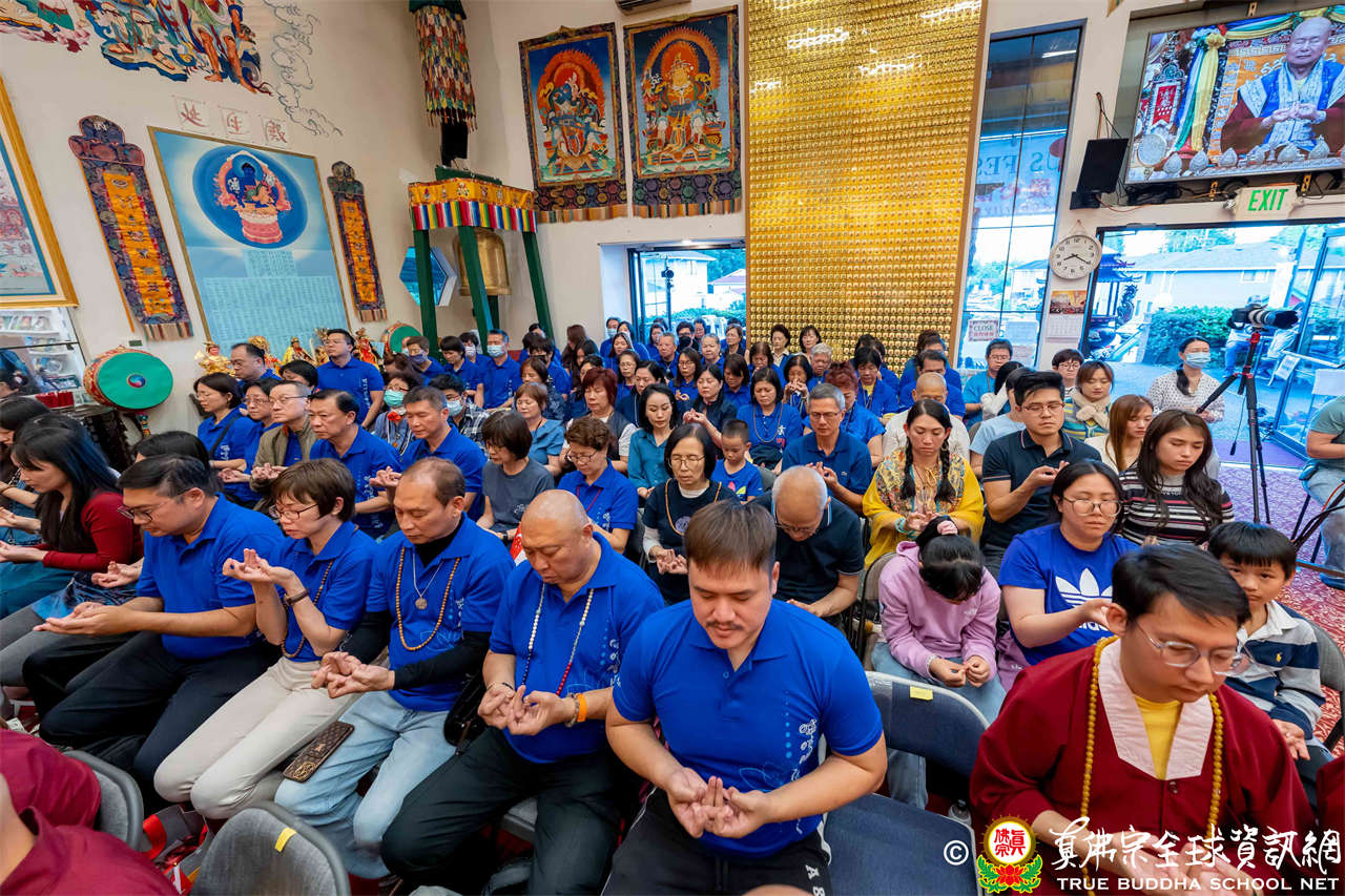聖尊精闢充滿法味的講經開示結束後,慈悲加持大悲咒水,及為佛像開光。聖尊亦加持主尊灌頂幡,為求皈依者賜授皈依灌頂並為與會大眾加持。