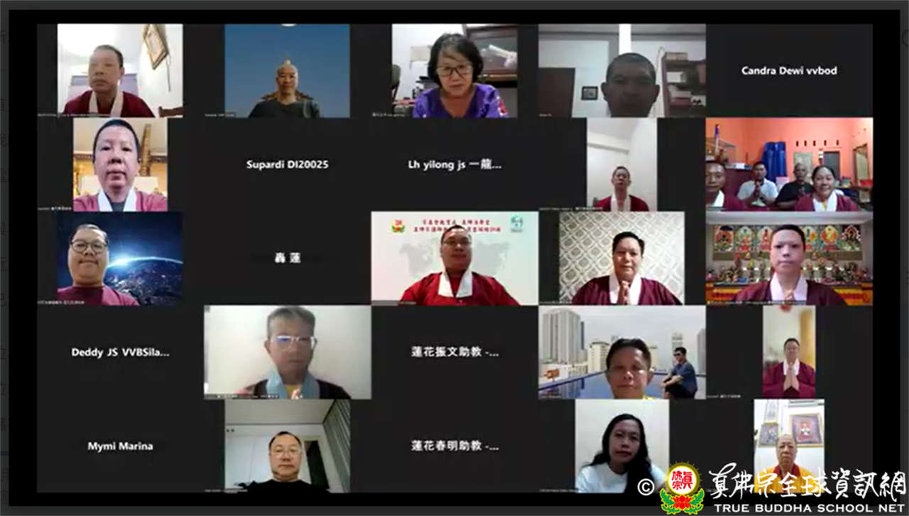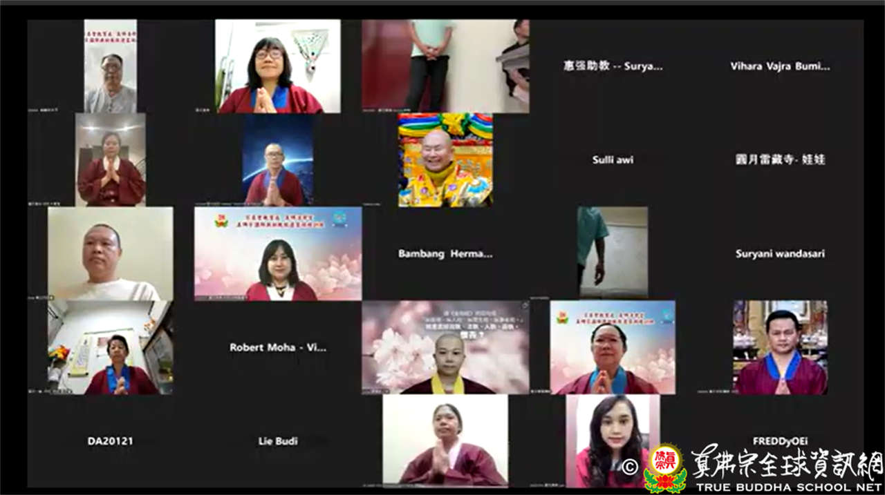 經過近5小時的交流,已近深夜。由印尼真佛宗僧伽團主席蓮飛上師致感謝詞說道:感謝會長各位處長講解釋疑,本次不僅是全印尼道場負責人、弘法人員線上線下參加交流會,現場還有準講師準助教,真的是名符其實的交流,心與心的交流。