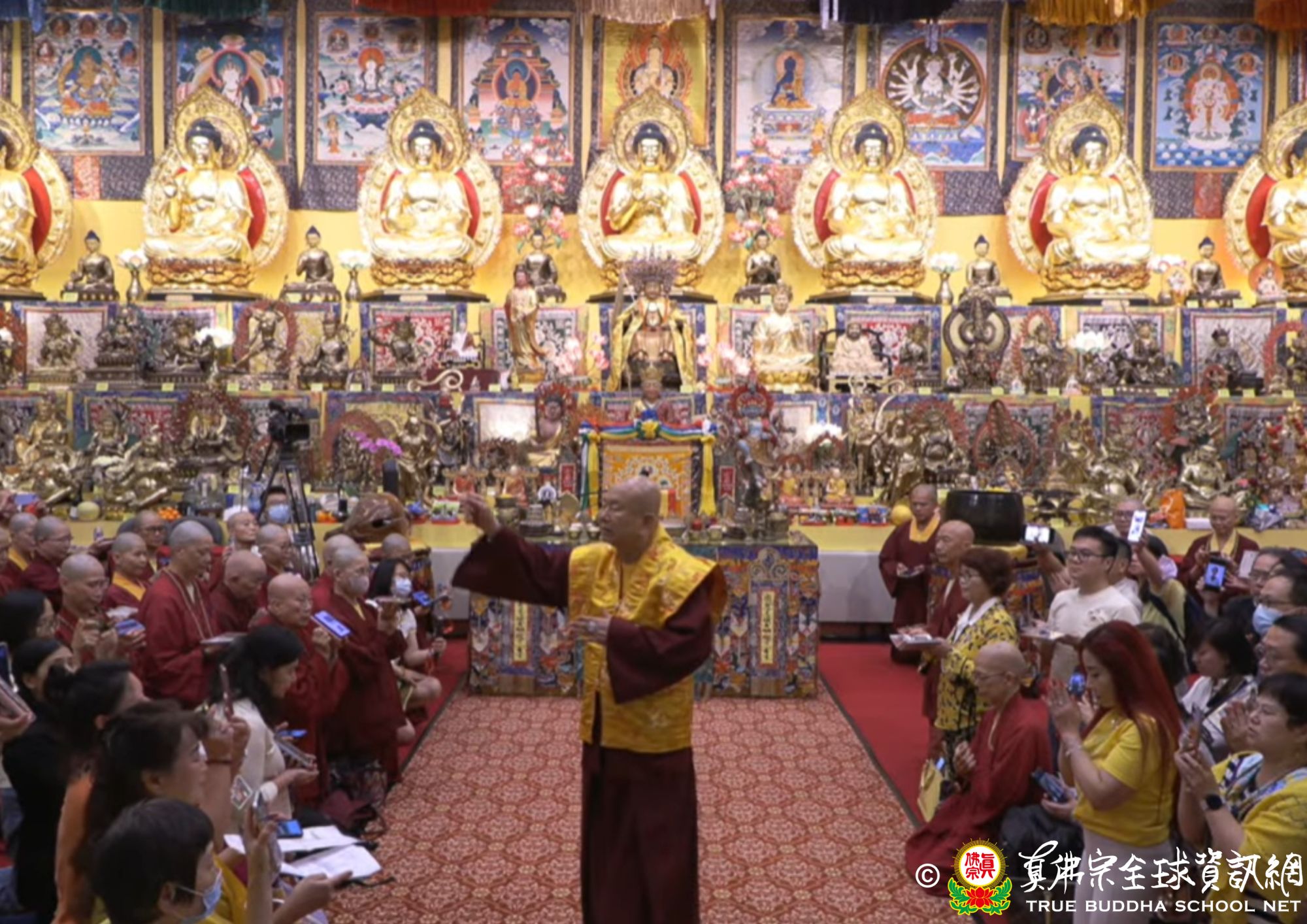 今天修黃財神本尊法。聖尊說自己之前在黃財神的法會中一樣腳的大拇指腫痛,便也同樣祈求五方佛的加持腳能康復,隔了一個晚上腳便康復了。