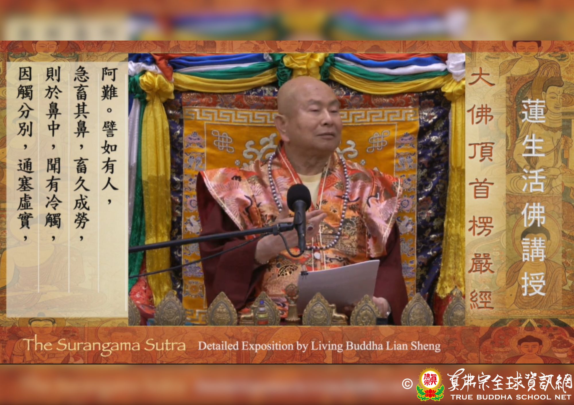 嗅覺也是一種虛妄,與舌頭的感覺是一樣。為何聞到的香不是香?聞到的臭不是臭?聖尊舉例:我們去魚市場聞到的味道都是很不好聞的味道,但是煮熟了卻是香味。香與臭是互相變化的。釋迦牟尼佛說這一切都不是從虛空來,也不是從鼻子產生,與佛性與妙明真心一點關係也沒有。