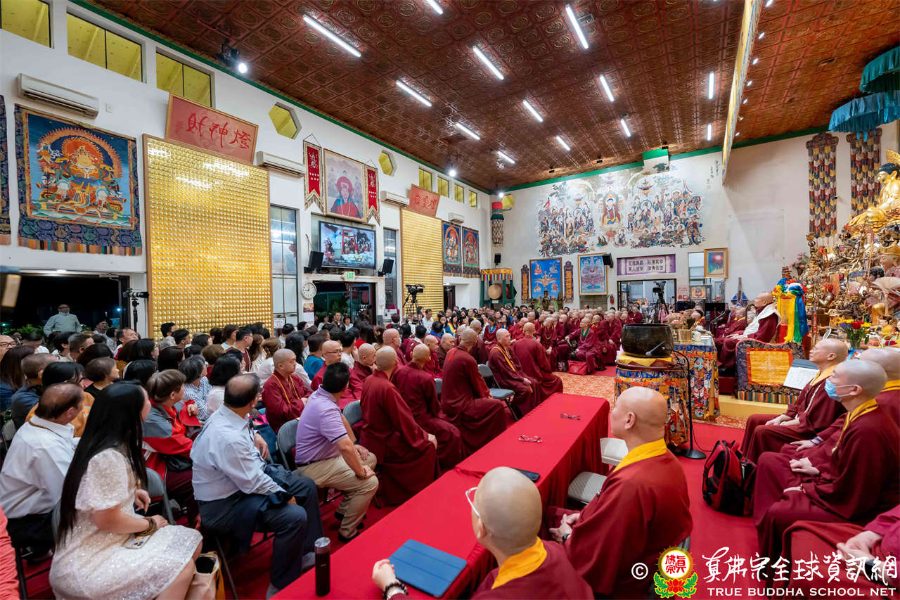 大家在莊嚴的蓮花童子心咒聲中,迎來了我們的根本傳承上師聖尊蓮生活佛盧勝彥。聖尊步履安詳,慈視大眾,進入壇場,昇於法座上,主持蓮花童子本尊法同修。