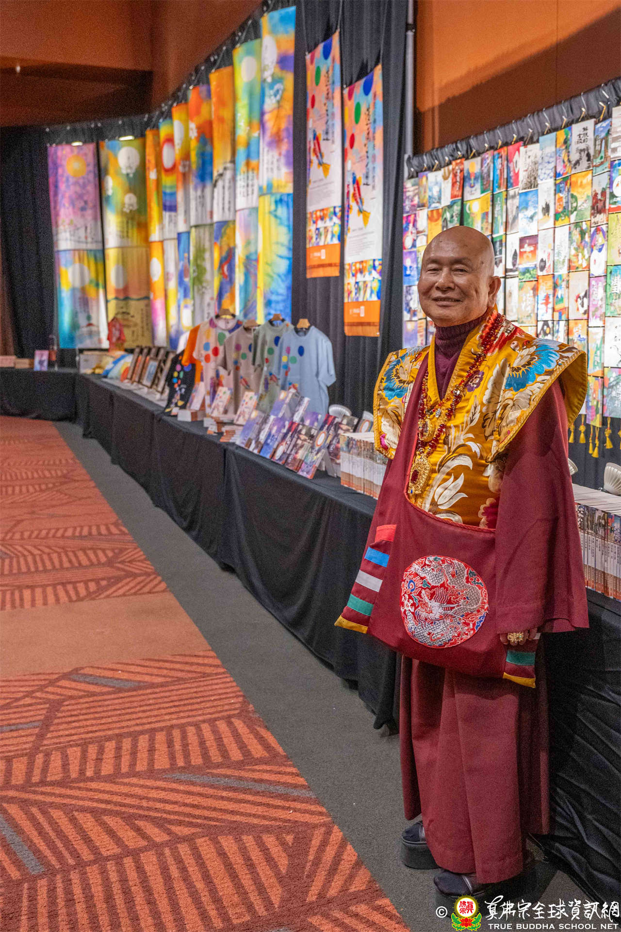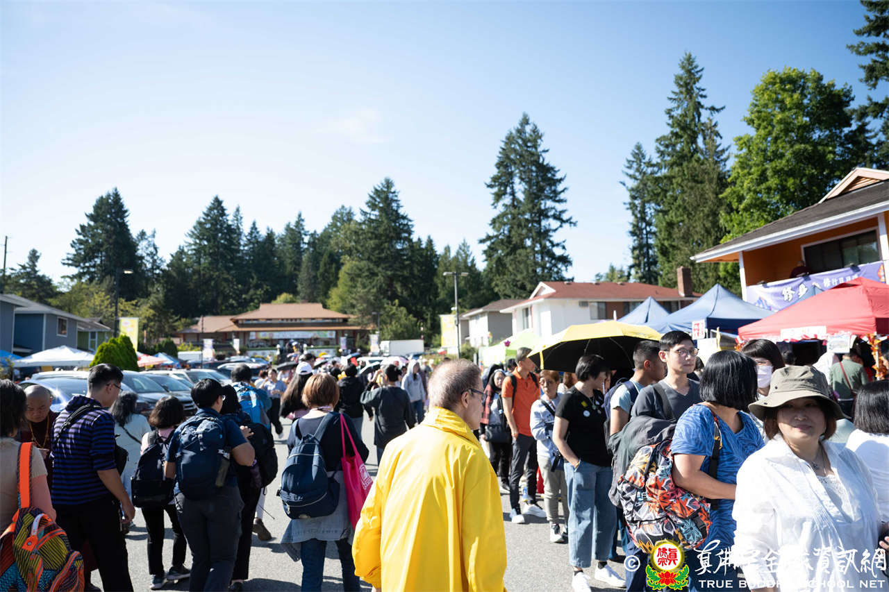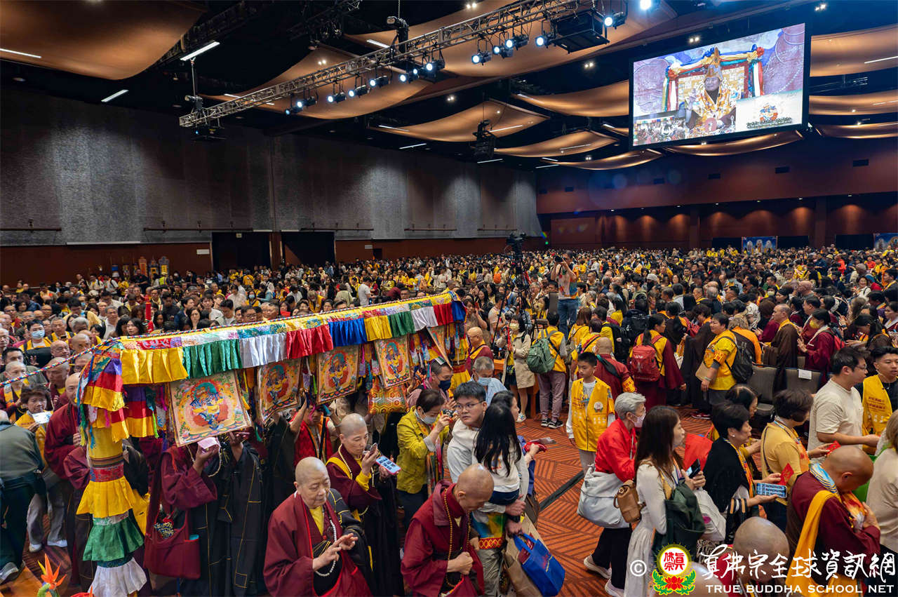 是日上午,自世界各地前來朝聖的弟子們歡喜相聚於會場,各攤位的佛具琳瑯滿目,吸引眾人圍觀選購,熱熱鬧鬧,人山人海,如同嘉年華會。
