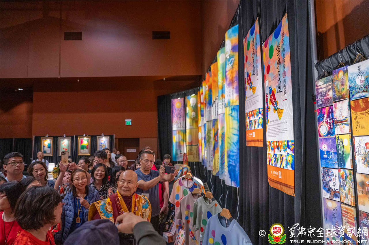 法會前夕,聖尊蓮生活佛親臨會場,加持往生位、延生位,並參觀由真佛般若藏設置之「造化之通」書畫展,其中陳列聖尊全部著作文集、多幅真跡畫作,及許多衍生的精美文創商品。文集共306冊,依序排放猶如蜿蜒河流,而畫作蘊含深邃的禪意,令人深受啟發。