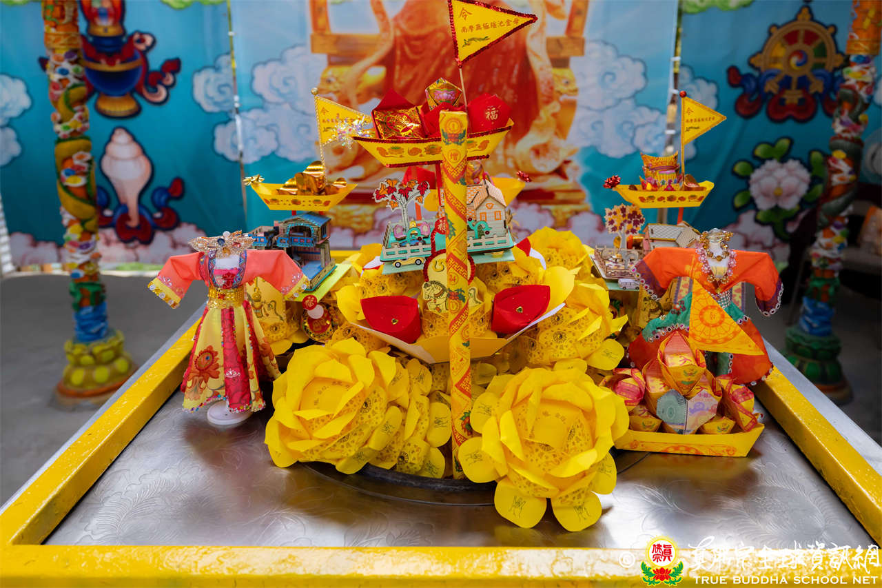 法王說明,這句名號源自《龍舒淨土文》,由金粟如來與祂傳授,為真佛宗特有法門。配合往生咒與名號持誦,可迅速圓滿超度大業,救度廣大眾生。