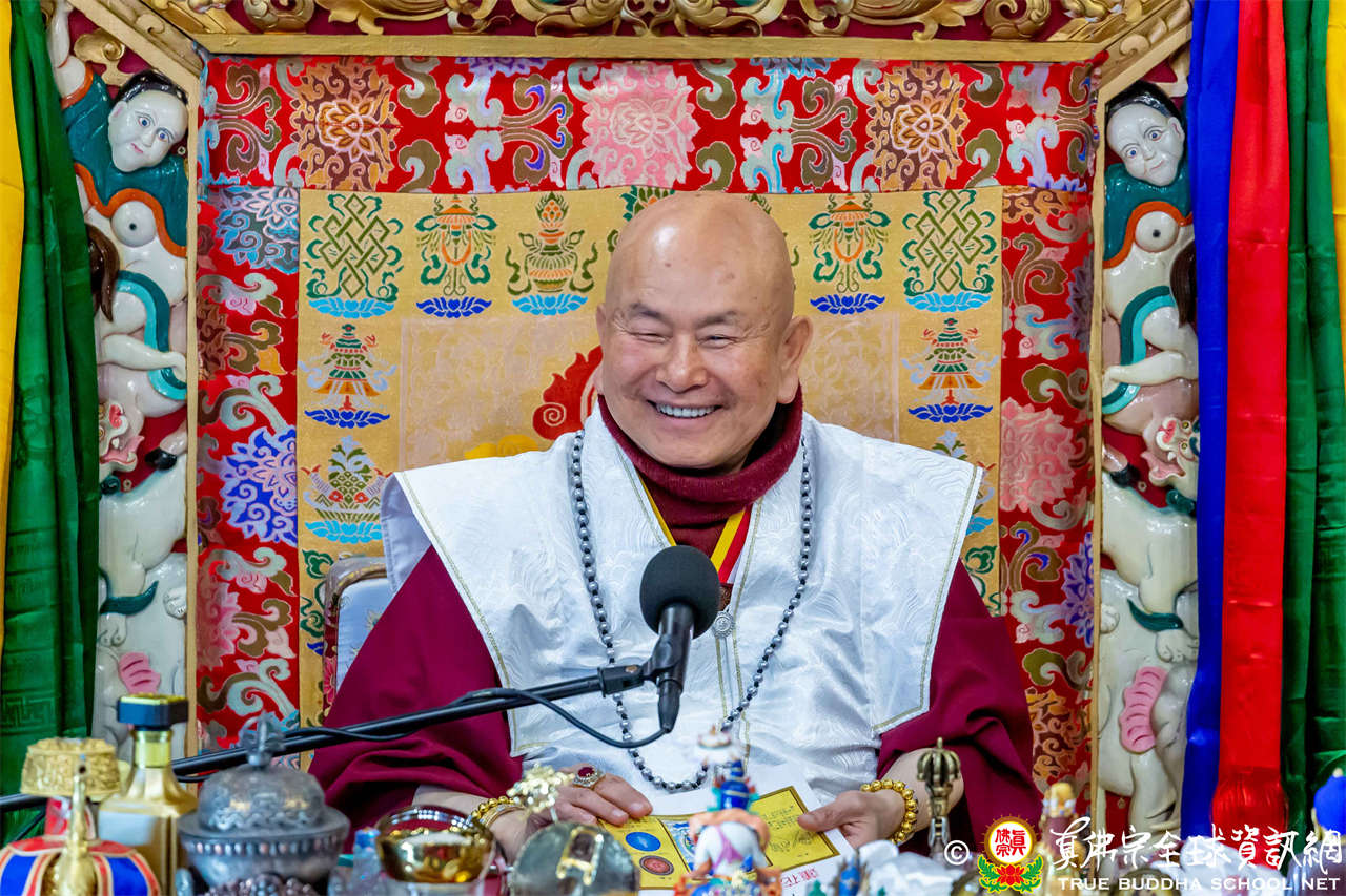 接著,法王繼續講解《大佛頂首楞嚴經》〈卷第三〉:「阿難。汝常意中。所緣善惡無記三性,生成法則。此法為復即心所生,為當離心,別有方所。阿難。若即心者,法則非塵。非心所緣,云何成處。若離於心,別有方所,則法自性,為知非知。知則名心,異汝非塵,同他心量。即汝即心,云何汝心,更二於汝。若非知者,此塵既非色聲香味,離合冷煖,及虛空相,當於何在。今於色空,都無表示,不應人間,更有空外。心非所緣,處從誰立。是故當知,法則與心,俱無處所。則意與法,二俱虛妄。本非因緣,非自然性。」