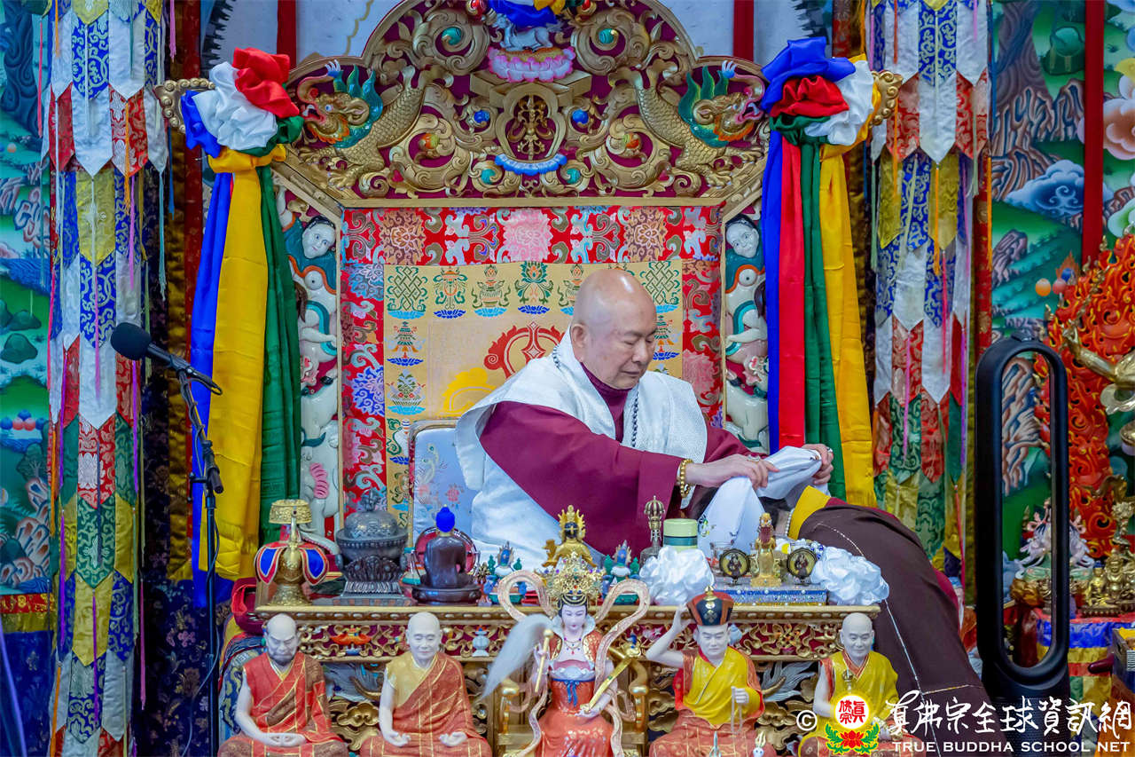 結束精彩的法語開示後,法王慈悲賜授現場與會大眾「大白蓮花童子法」灌頂,法會圓滿落幕。