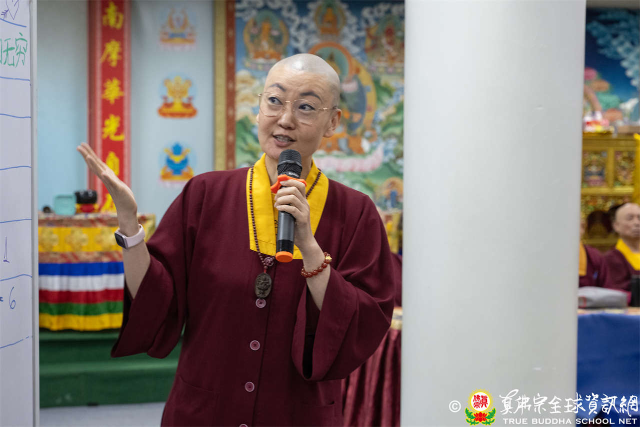 蓮訶上師在總結報告時,首先感恩所有诸佛菩萨、金刚护法的放光加持,並強調除了感谢根本上師的加持之外,也要對最辛苦的承辦單位——馬密總大德佛學院、蓮太上師、細妹講師及所有義工,致以最深的謝意。