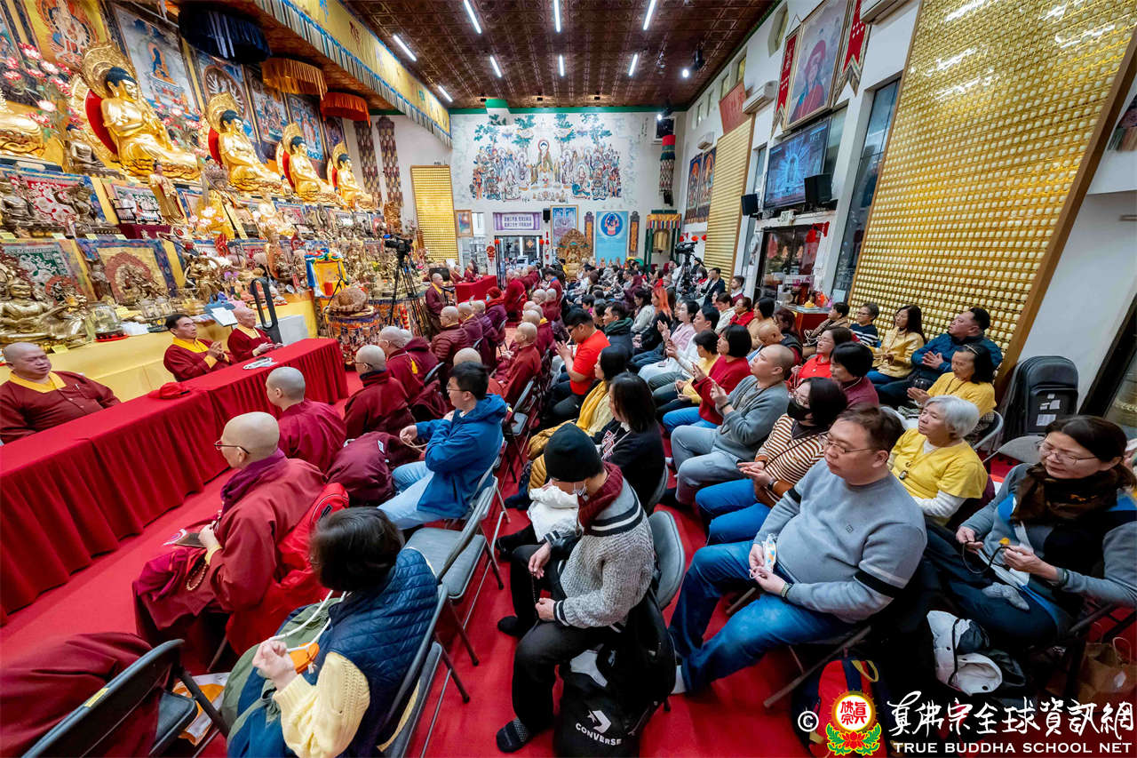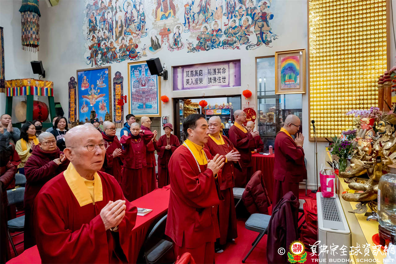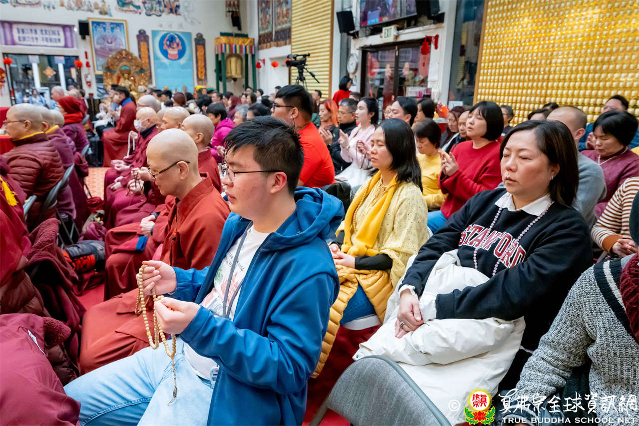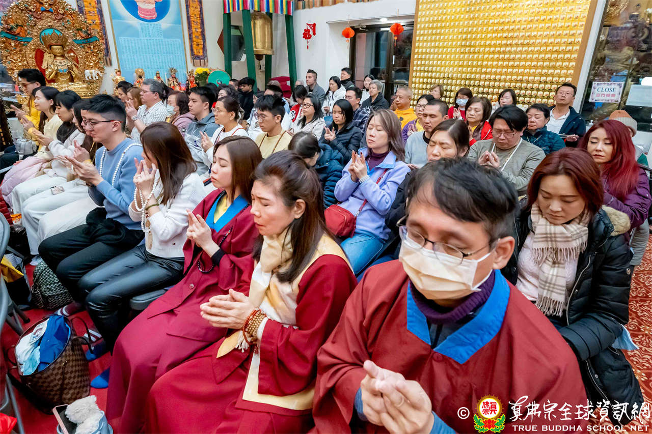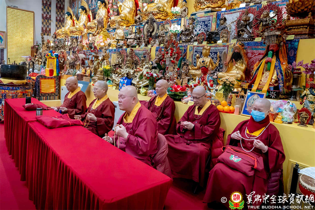 雖然天寒地凍,大眾仍虔敬的熱忱參與,跟隨著蓮吟上師做禮拜、獻供、誦經、持咒、入定、回向,人人全神貫注的修法,祈求瑤池金母大天尊、阿彌陀佛、諸佛菩薩護法金剛佛光注照,聖尊與師母都健健康康的早日和弟子們團聚在西雅圖雷藏寺。