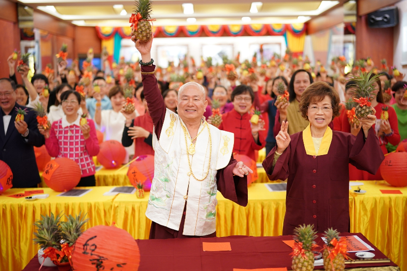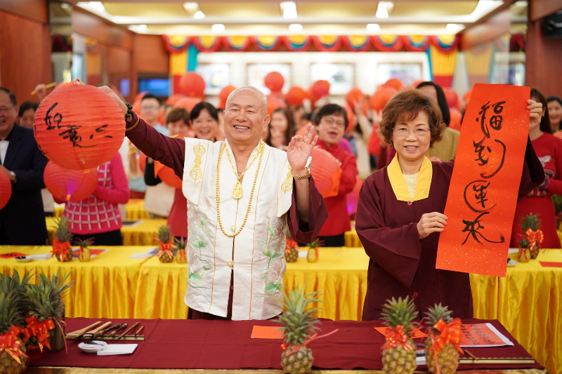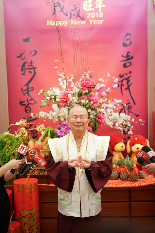 【TBSN報導】蓮生活佛盧勝彥法王 於2018年2月16日(年初一)PM 3:00 在〈台灣雷藏寺〉主持「彌勒佛護摩大法會」。法王與蓮香金剛上師師母上午蒞臨台灣雷藏寺,與眾弟子歡聚,齊齊團拜。師尊接受台灣電視媒體專訪,與眾弟子畫年燈與春聯,並賜弟子紅包與紅蘿蔔。法王與師母還走到台灣雷藏寺各攤位,一一加持,眾弟子歡欣鼓舞,人人喜不自勝!當天,印尼MAYJENDSUMIHARJOPAKPAHAN 中將也特別蒞臨法會現場,護持法王的法會。