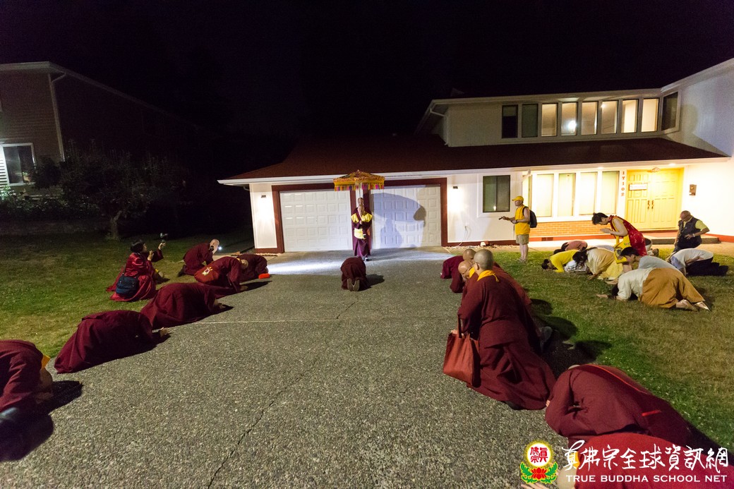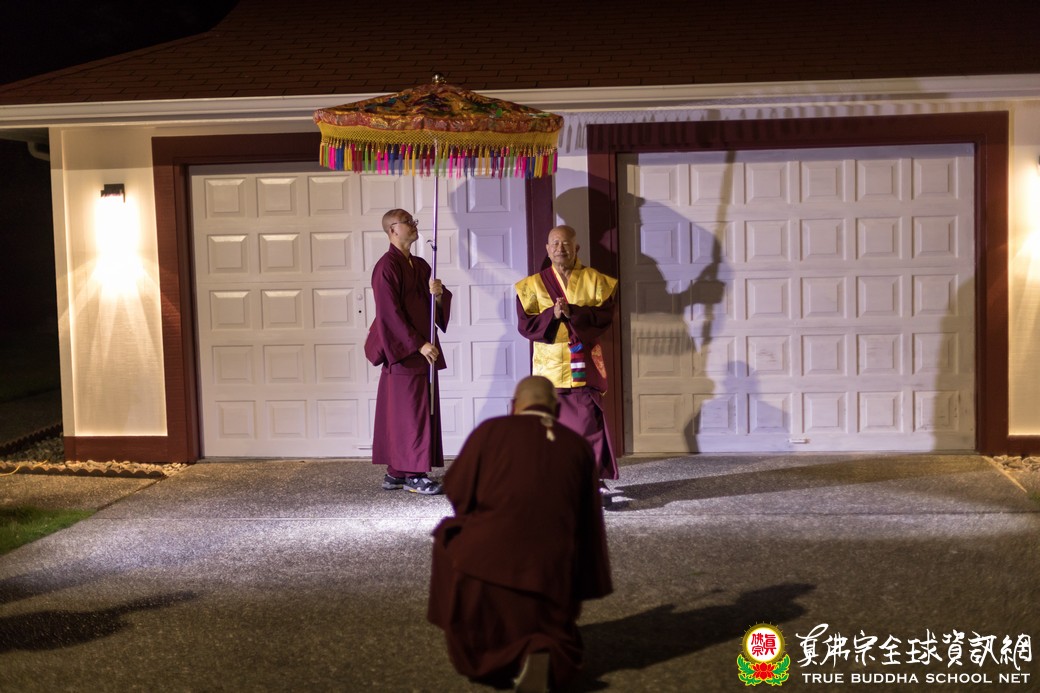 今晚祖廟周六同修的是準提佛母本尊法。咒音響起,莊嚴的迎師隊前往真佛密苑恭迎聖尊蓮生活佛盧勝彥主壇同修暨講授道果。