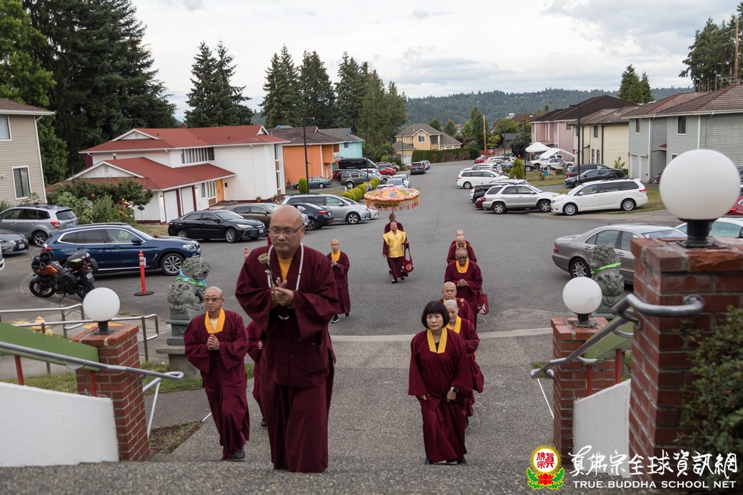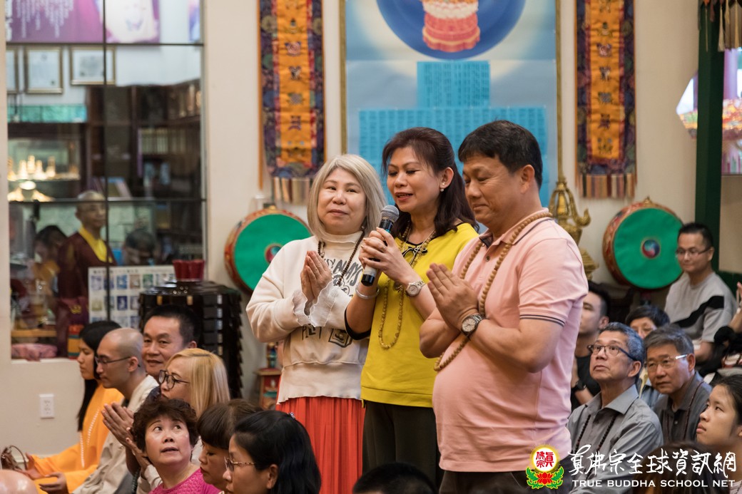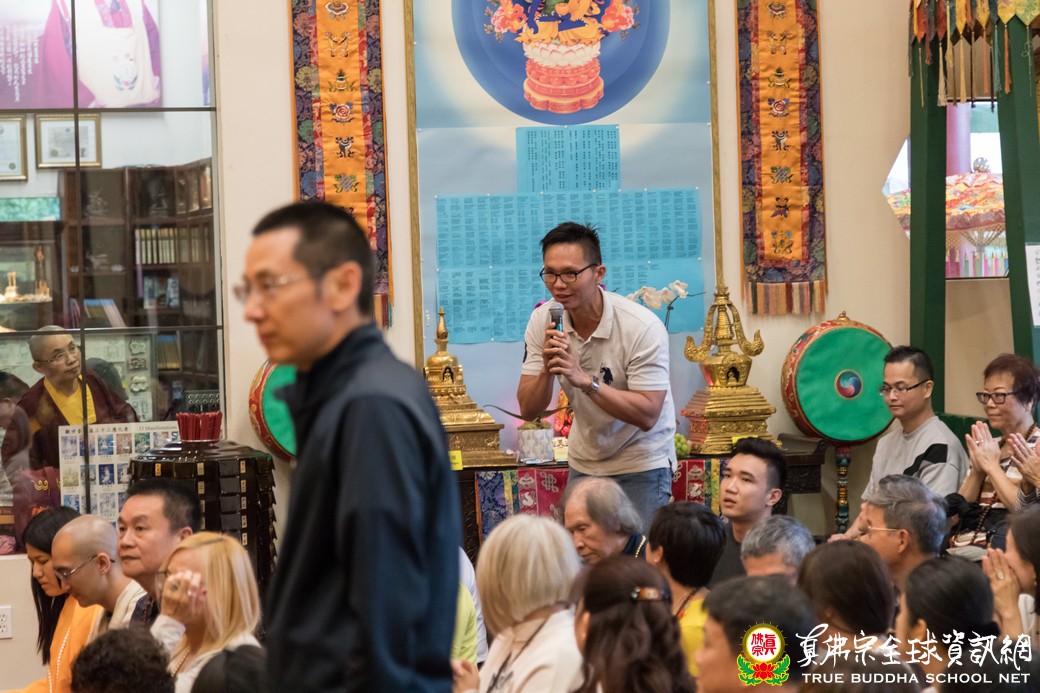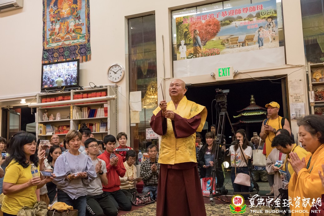精采的開示結束後,聖尊為信眾賜授皈依灌頂、加持大悲咒水及開光佛像。離開廟前,聖尊慈悲的為大眾摩頂加持,讓大家所求皆能圓滿。看著聖尊步出大殿的慈悲身影,弟子們道不盡的感恩之情,內心深處衷心祈願著,我們慧命的父親蓮生聖尊健康自在、長久住世。