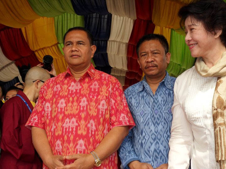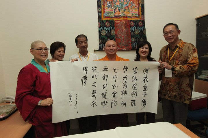 蓮生活佛ㄧ道出此地理奧妙,與會群眾掌聲連連,最後,活佛與二位前來的貴賓:印尼宗教部佛教司長Budi Setiawan及印尼蘇北佛教輔導司長Ketut Supardi,及蓮祖.蓮飛上師等多位幹部合影留念。