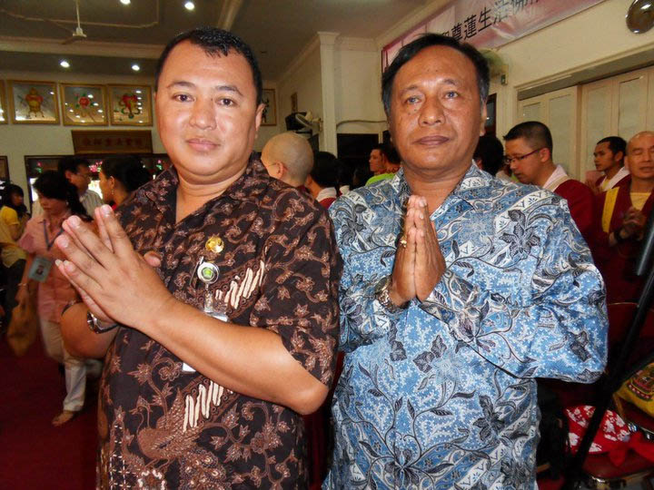 在蓮生活佛抵達之前,當地宗教部中爪哇區佛教事務主任Sayit先生與佛教徒總協會代表Suparjo先生早已在寺大殿等候蓮生活佛的到來。