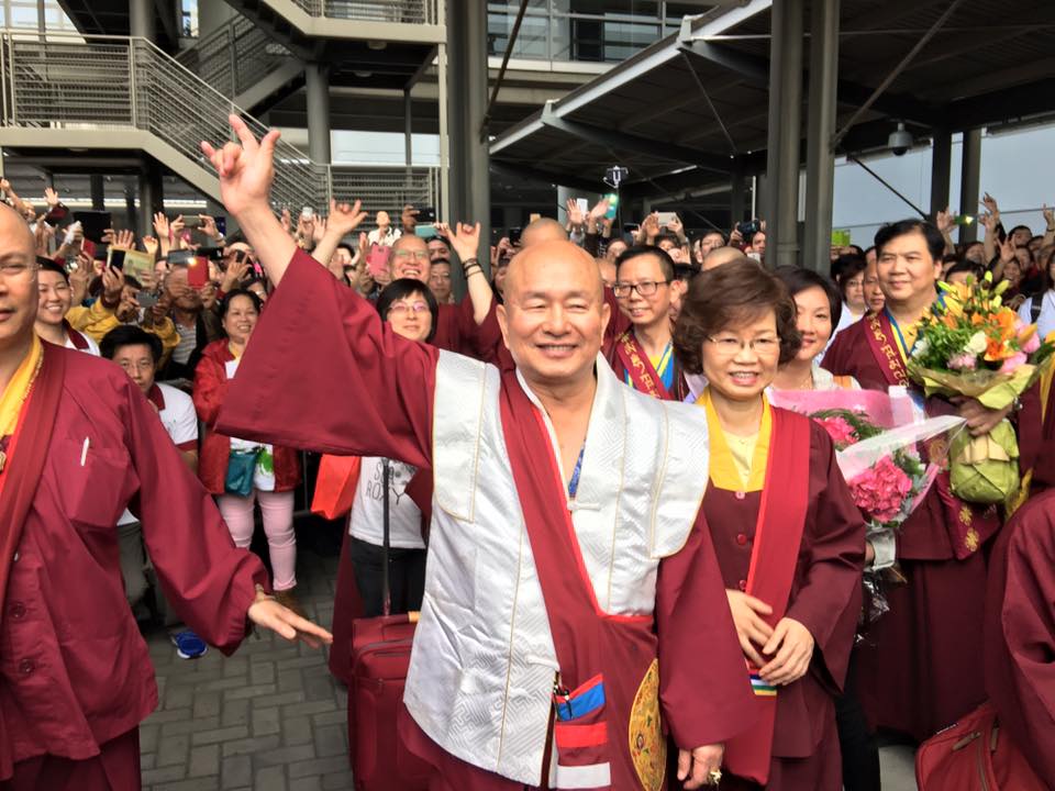 12日下午三點多,蓮生活佛盧師尊丶蓮香師母抵達香港國際機場。